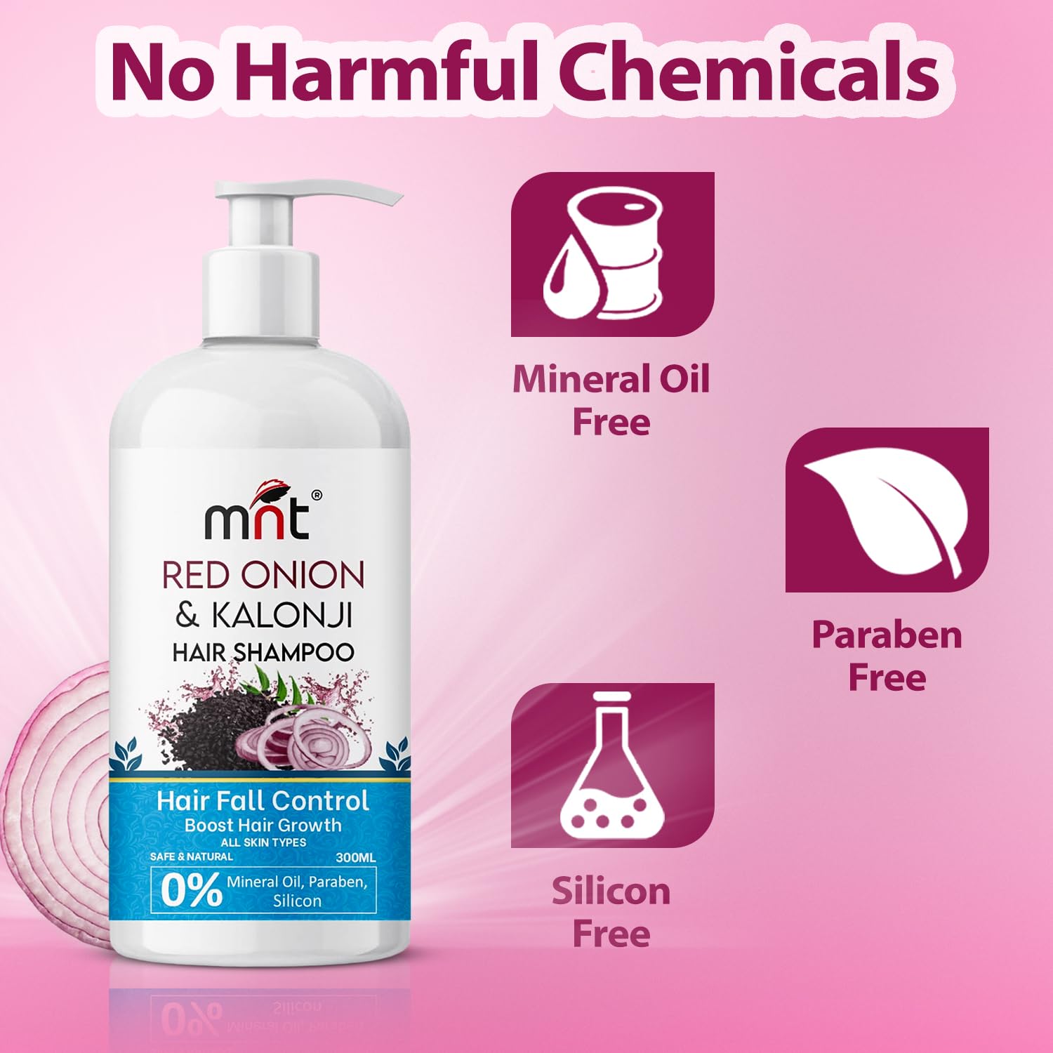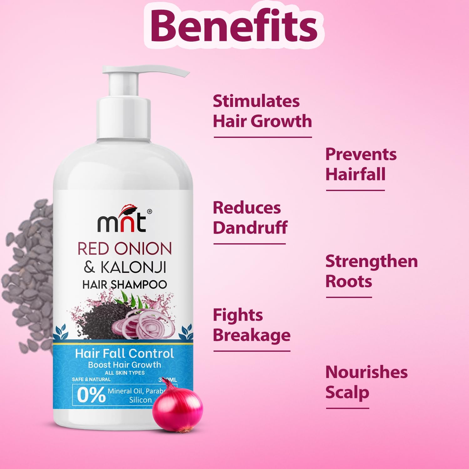 MNT Red Onion & Kalonji Hair Shampoo for Hair Fall Control and Hair Growth with Onion & Black Cumin Seed Oil 300 ml