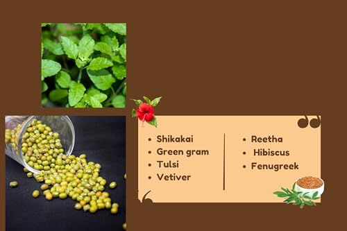 • Ingredients: shikakai green gram tulsi vetiver reetha hibiscus and fenugreek