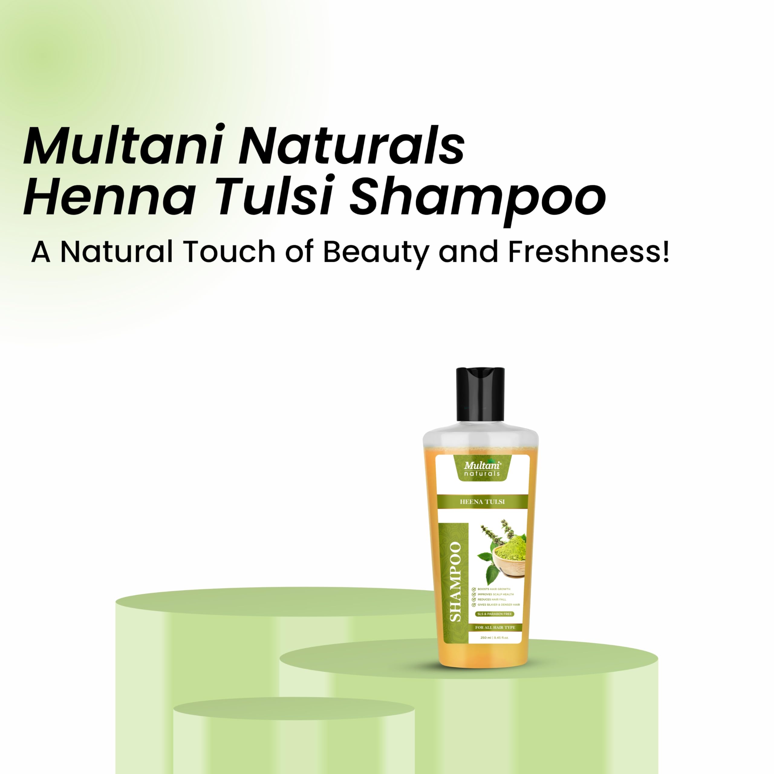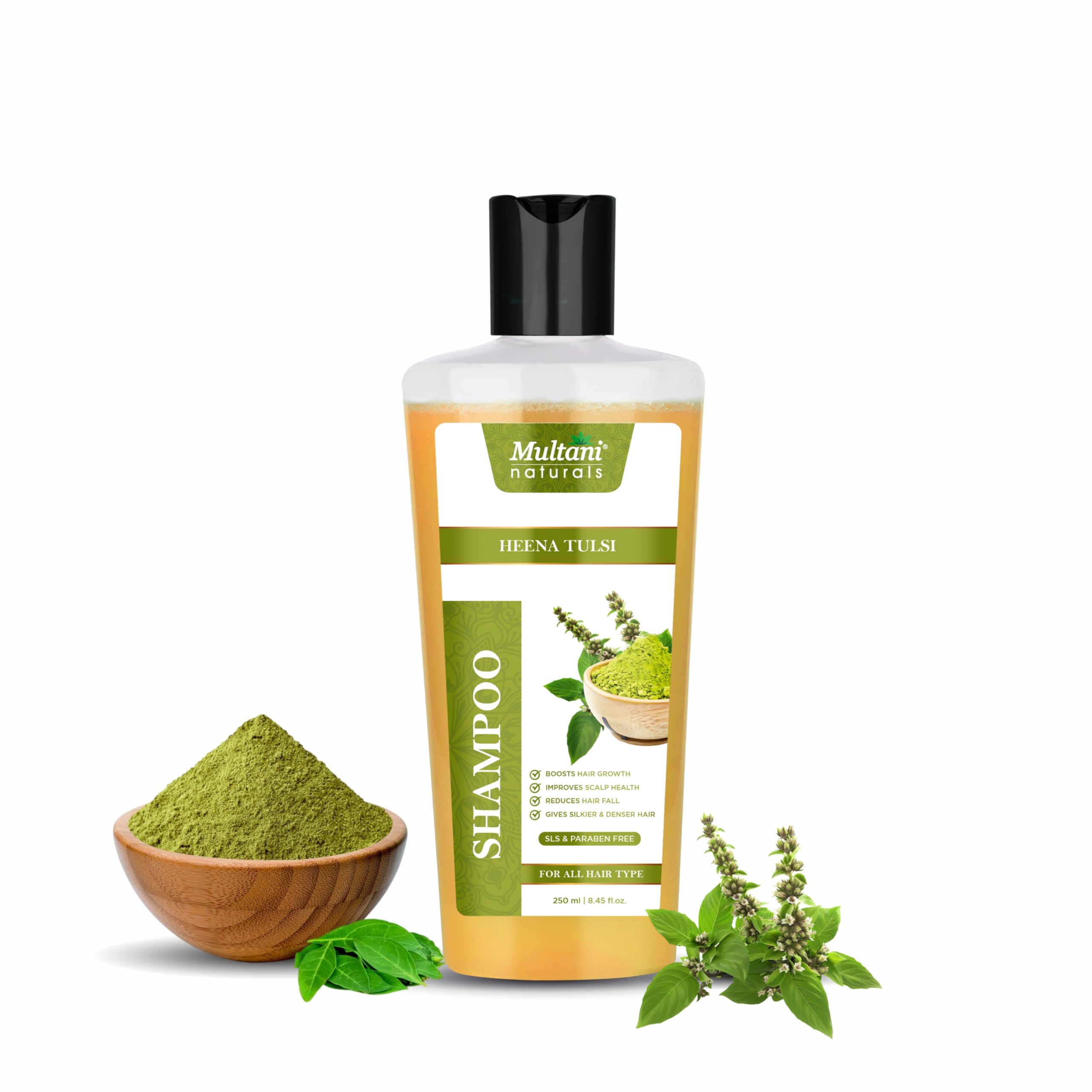 Multani Naturals Henna & Tulsi Shampoo | For Silkier & Denser Hair | Improves Scalp Health | For Hair Growth & Dandruff Control | SLS & Paraben Free | Dermatologically Tested | 250 ml