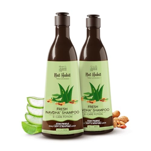 Nat Habit Aloe Peanut Navdha Shampoo - Natural Cleanser for Women & Men, Locks Intense Moisture, Renders Sheen, For Daily Hair Softness, (Pack of 2 X250ml)