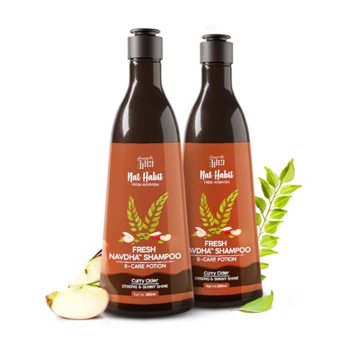 Nat Habit Curry Cider Navdha Shampoo - Natural Cleanser for Women & Men, Enhances Immense Shine, Retains and Imparts Moisture, For Strong & Sunny Shine Hair (Pack of 2 X 250)