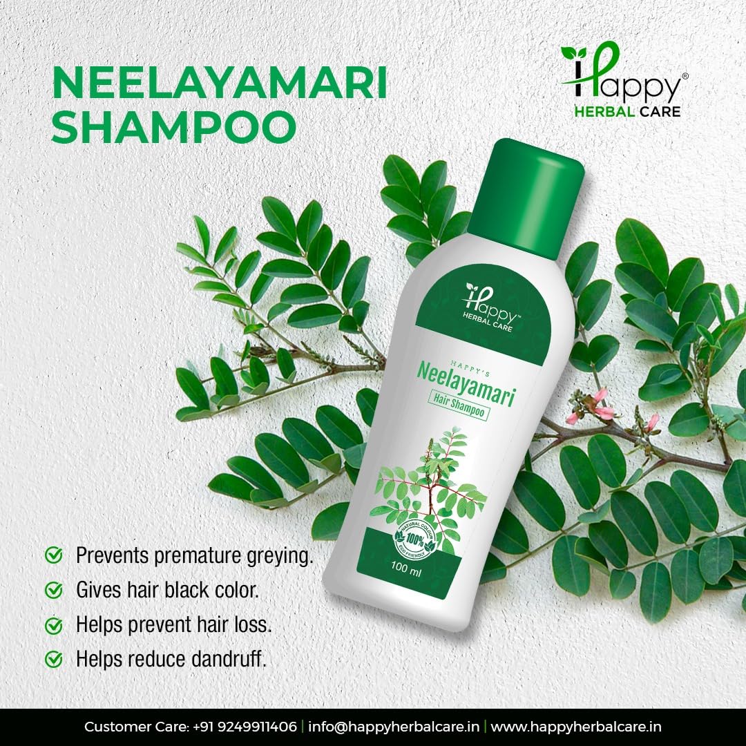 Happy Neelayamari (Indigofera tinctoria) hair shampoo is gentle enough for everyday use even for colour or chemically treated hair. This hair shampoo is used for premature greying of the hair hair growth dandruff hair dye and dry hair.