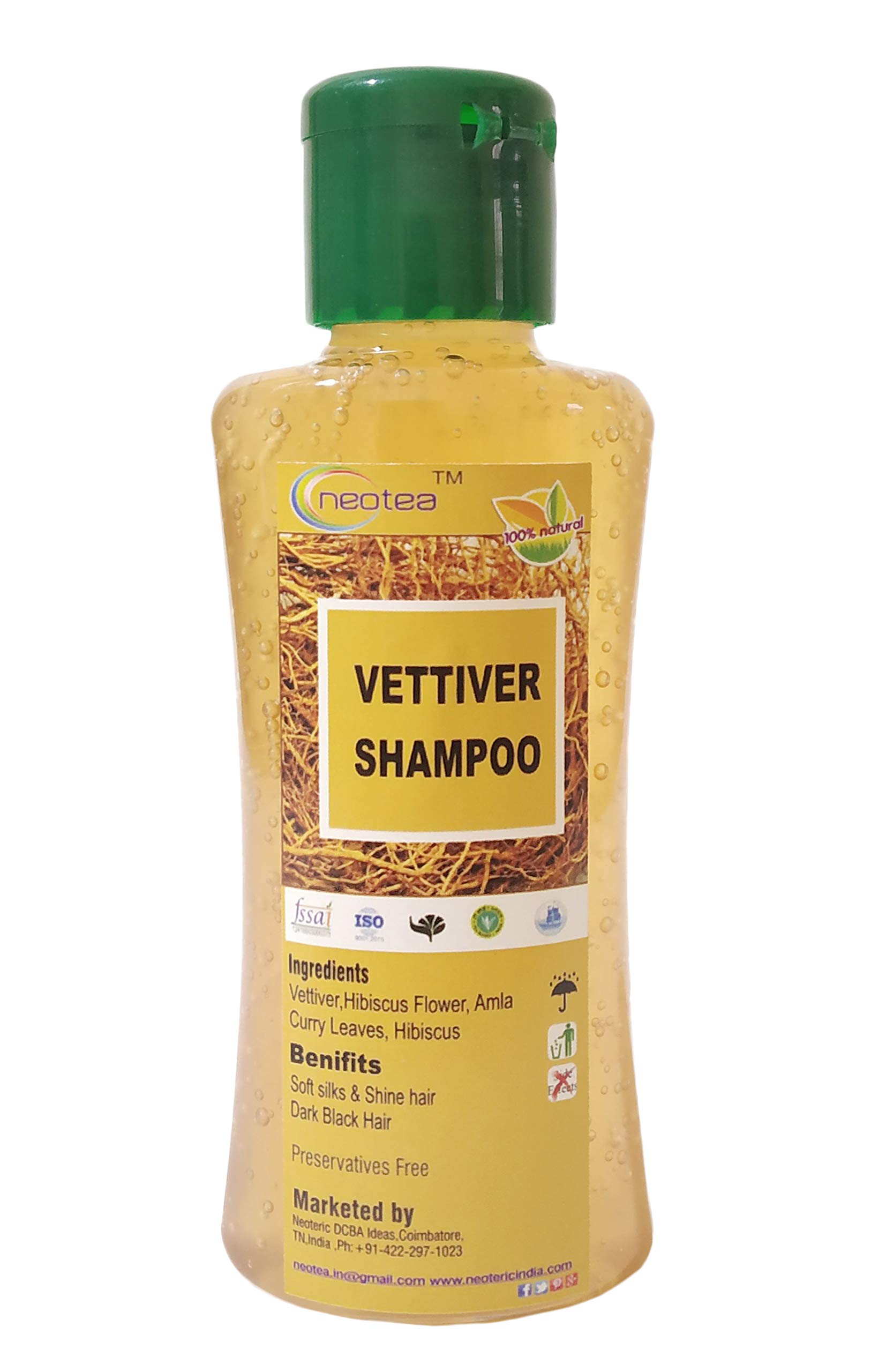 Neotea Shikakai & Vettiver Shampoo is a unique herbal formulation designed to provide natural care for your hair. This shampoo helps control dandruff promote hair growth and strengthen hair roots. It is enriched with powerful ingredients like Shikakai (known for its cleansing and nourishing properties) and Vettiver (also called Kus Kus grass in some languages such as Kannada Telugu Bengali Marathi Gujarati Tamil and Malayalam as Ramacham). These ingredients are known for their deep conditioning and revitalizing effects on the scalp and hair. Key Benefits: Controls Dandruff: Shikakai works to naturally cleanse the scalp preventing dandruff and promoting healthier flake-free hair. Promotes Hair Growth: The stimulating properties of Vettiver help improve scalp circulation supporting stronger hair growth and reducing hair fall. Strengthens Hair Roots: Both Shikakai and Vettiver provide deep nourishment to hair roots making them stronger and less prone to damage. Suitable for All Hair Types: This shampoo is gentle enough for all hair types whether your hair is dry oily curly or straight. Natural Ingredients: Free from harmful chemicals like parabens and sulfates itâs perfect for a safe and eco-friendly hair care routine. Treat your hair to the nourishing and natural goodness of Shikakai and Vettiver and enjoy stronger healthier hair with every wash. Perfect for regular use this 250ml bottle will keep your hair in top condition all while offering the benefits of traditional herbal remedies passed down through generations.