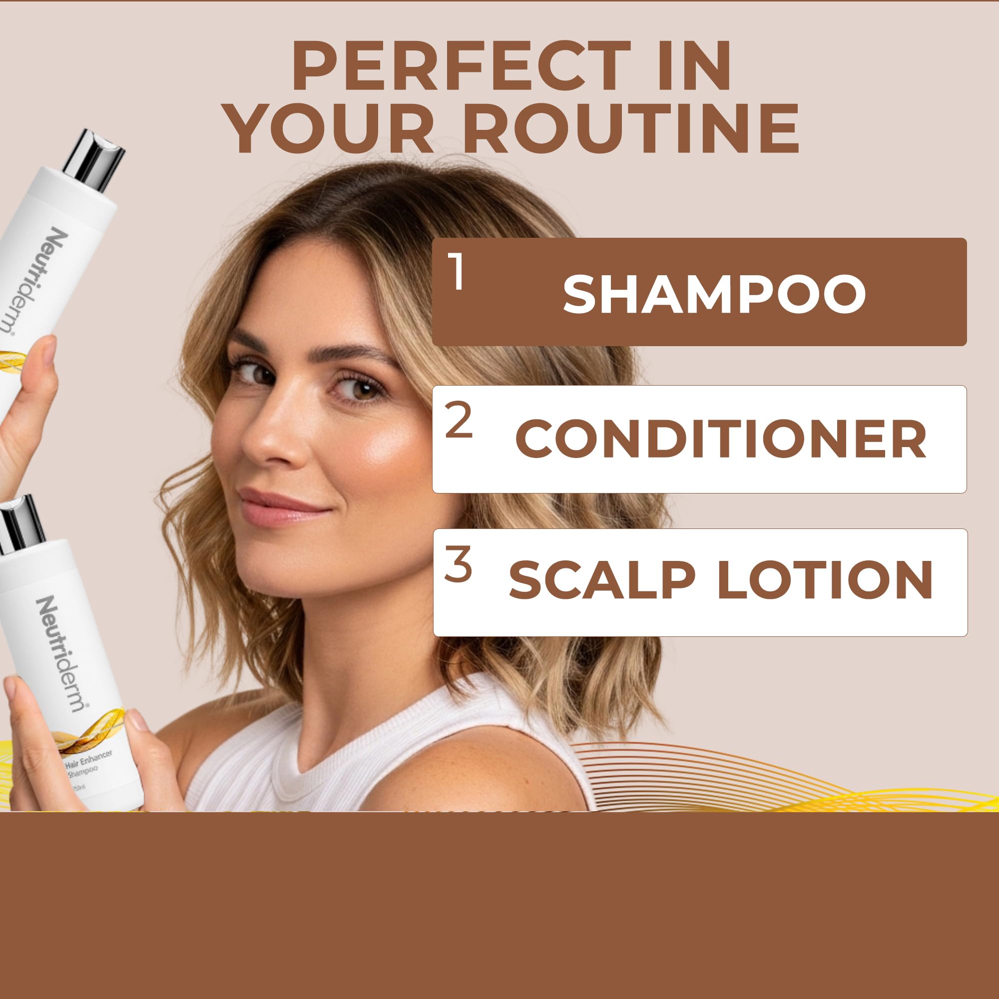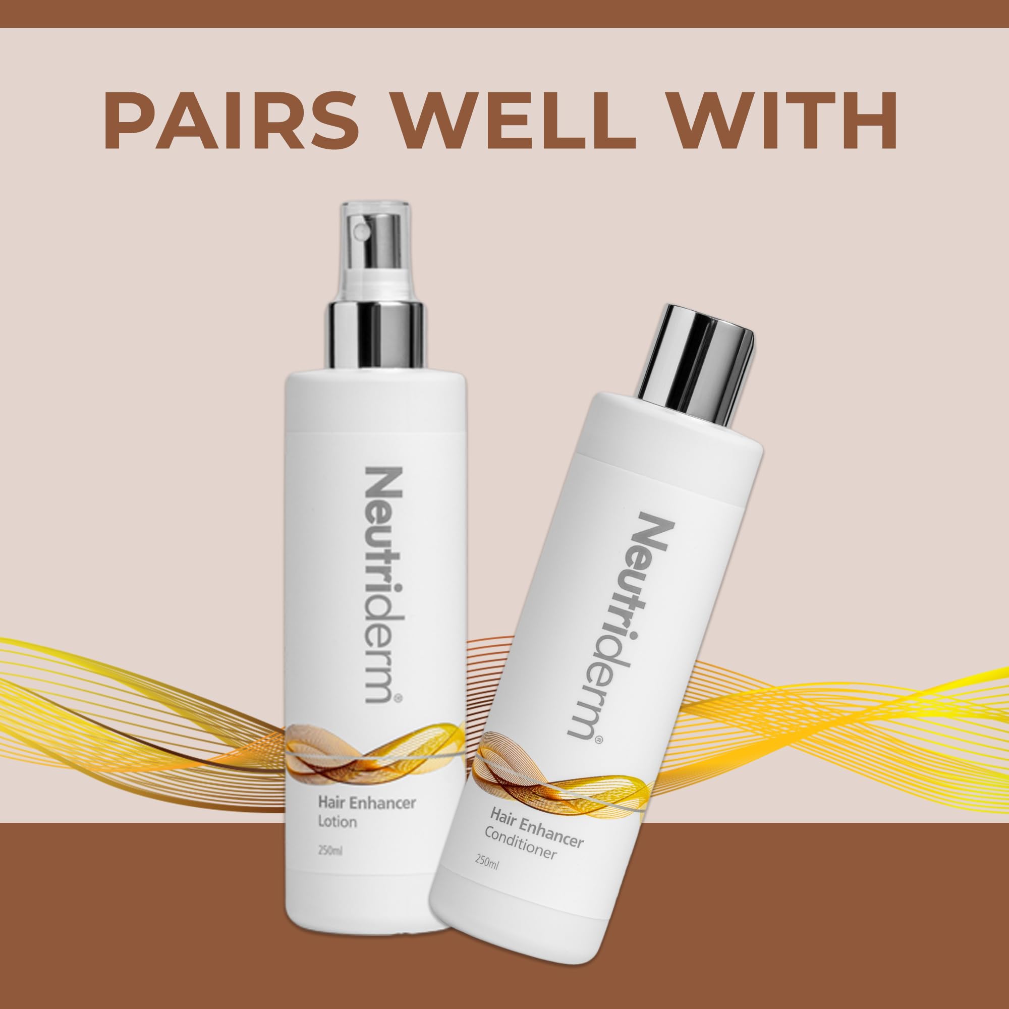 REVITALIZING SHAMPOO FOR WEAK HAIR: Neutriderm Hair Enhancer Shampoo intensively cleans each strand to improve the look of hair.