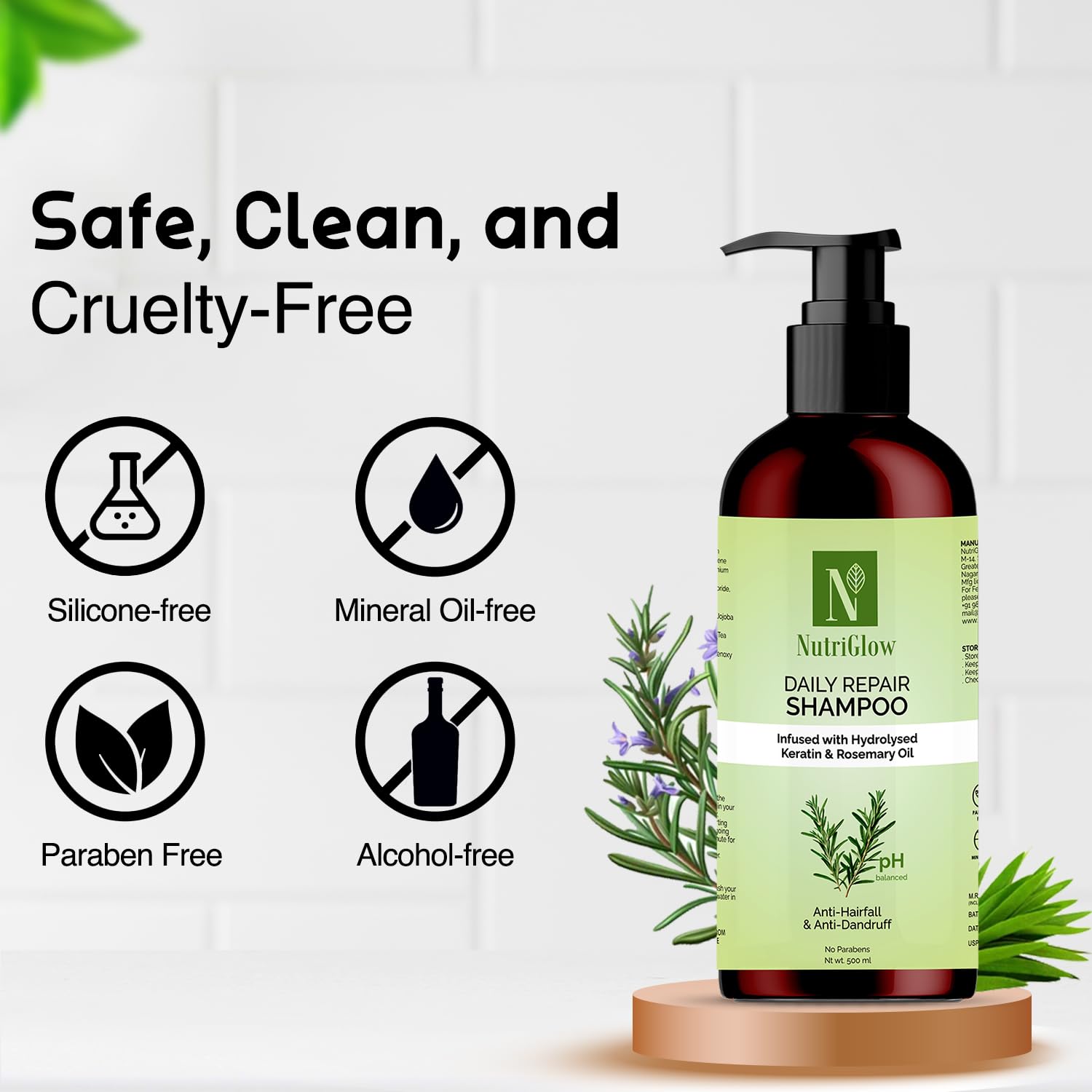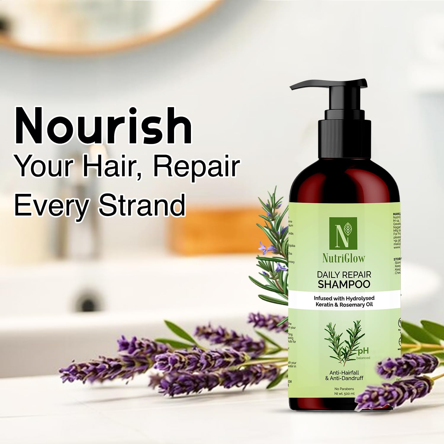 NutriGlow Daily Repair Shampoo Anti Hair Fall Anti-Dandruff pH Balanced for Healthy Hair (500 ml)