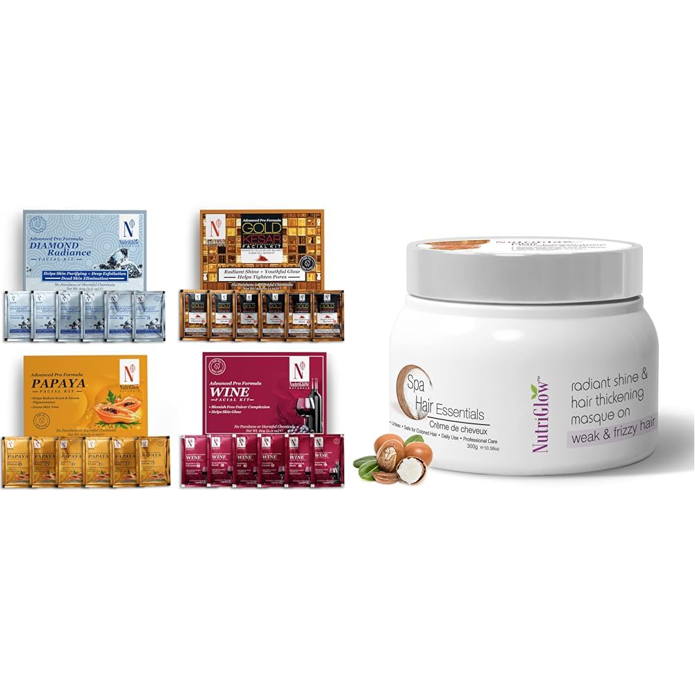 HomeHealth & PersonalHair CareOrganic Shampoos & ConditionersNutriGlow NATURAL'S Advanced Pro Formula Cleanup Kit All Type of Skin Solution for men & women 60 gm (Pack of 4) & Hair Spa Cream With Volumizing & Shine Lock Formula For Weak & Frizzy Hair 300g