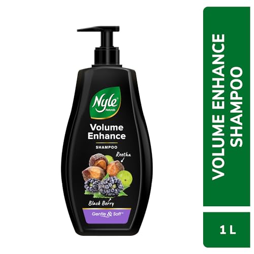 Nyle Naturals Volume Enhance Shampoo 1 L, For Long & Voluminous Hair with Blackberry, Reetha, & Amla | pH Balanced & Paraben Free Gentle & Soft Shampoo For Women & Men