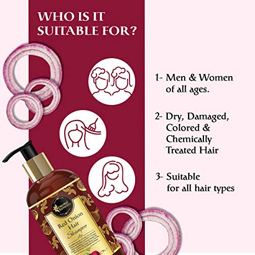 Healing Herbs & Essential Oils- The natural ingredients in Red Onion Hair Shampoo refresh & nourish your strands to make them feel thicker and stronger.