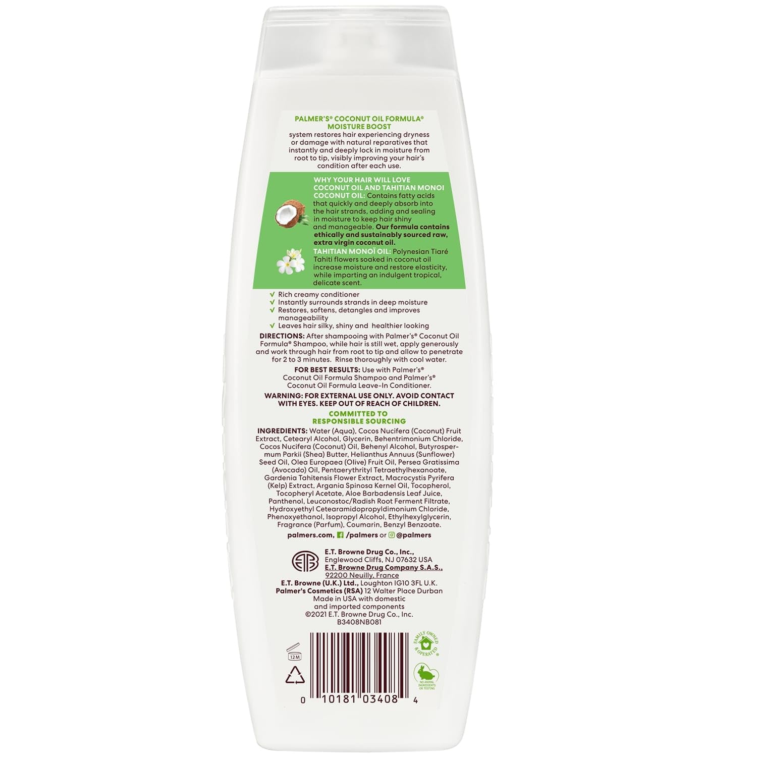 Palmer's Coconut Oil Conditioner For All Hair Types For Moisture Boost Of Dry Damaged & Colour Treated Hair Minimizes Tangles - 400Ml 1 Count