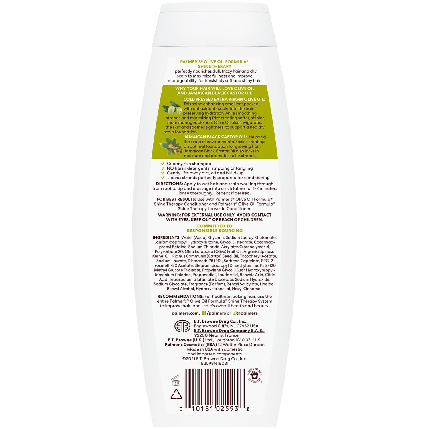 Palmer's Olive Oil Formula Smoothing Shampoo smoothes out frizzy hair replenishes moisture and nutrients and removes product buildup. This balanced blend of Extra Virgin Olive Oil Keratin Amino Acids and Vitamin E cleanses thoroughly and leaves hair healthier stronger softer and easier to style.Olive Oil is a powerful natural ingredient used since ancient times to give hair strength and brillant shine. Palmer's Olive Oil Formula Smoothing Shampoo smoothes out frizzy hair replenishes moisture and nutrients and removes product buildup. This balanced blend of Extra Virgin Olive Oil Keratin Amino Acids and Vitamin E cleanses thoroughly and leaves hair healthier stronger softer and easier to style.