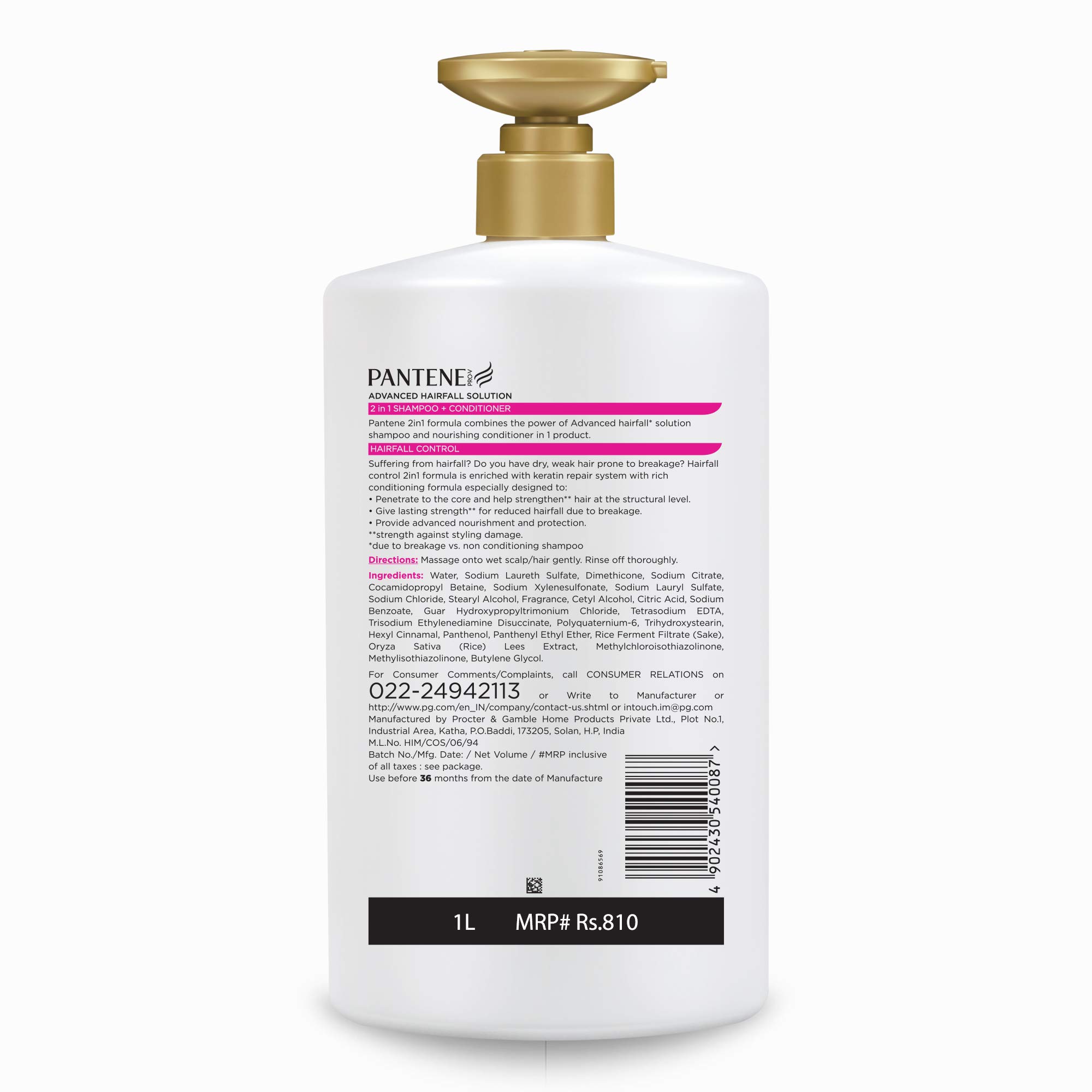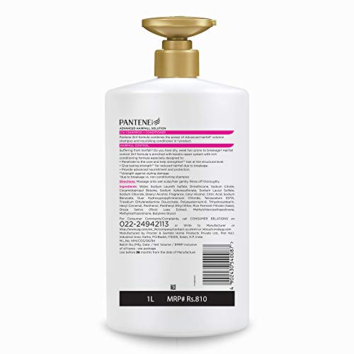 Pantene Advanced Hairfall Solution 2in1 Anti-Hairfall Shampoo & Conditioner for Women 1LSuffering from hairfall? Do you have dry weak hair prone to breakage? Hairfall control 2in1 formula is enriched with Pro-Vitamin and rich conditioning formula. The formula has been constantly advanced with help from Pantene’s global network of hair science experts. Get the benefit of shampoo & conditioner in one wash and enjoy frizz free silky smooth hair and gives nourishment your hair deserves with the advanced hairfall solutions formula in Pantene 2in1 Range.Pantene Advanced Hairfall Solution Anti-Hairfall Silky Smooth Shampoo for Women 1LThe new Pantene advanced hair fall solution silky smooth care shampoo combines the age-old anti-hair fall secret of fermented rice water with the revolutionary science of pro-v formula. It strengthens your hair from root to tip and reduces hair fall for more open hair days. This formula fights roughness and controls frizz to give smooth and manageable hair. The new Pantene advanced hair fall solution also provides protection against hair breakage and styling damage. For everyday use try it with the Pantene advanced hair fall solution conditioner and open hair miracle and experience more open hair days. Against styling damage vs non-conditioning shampoo due to breakage.
