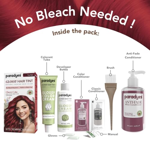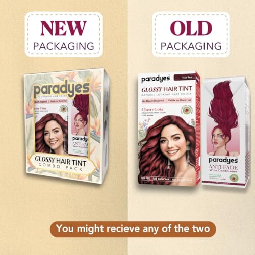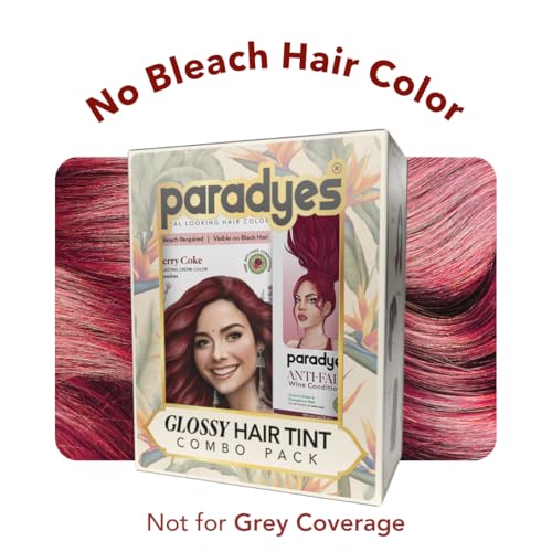 Paradyes Cherry Coke Glossy Hair Tint with Anti-Fade Wine Conditioner, No Bleach Ammonia-Free Formula for Natural Black Hair, Enriched with Herbal Extracts for Long-Lasting Shine