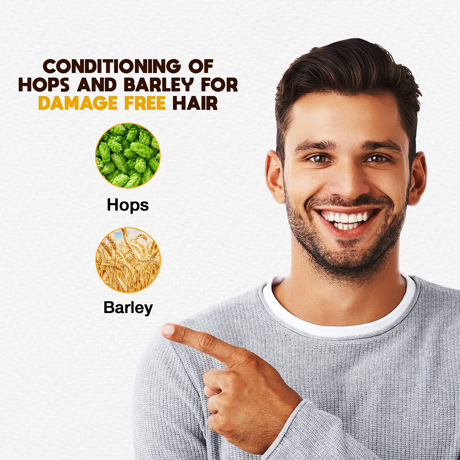 WITH GOODNESS OF HOPS & BARLEY: Hops help in giving volume to your hair and making it smooth due to its conditioning properties. Barley contains essential vitamins and minerals that give the hair a natural lustre