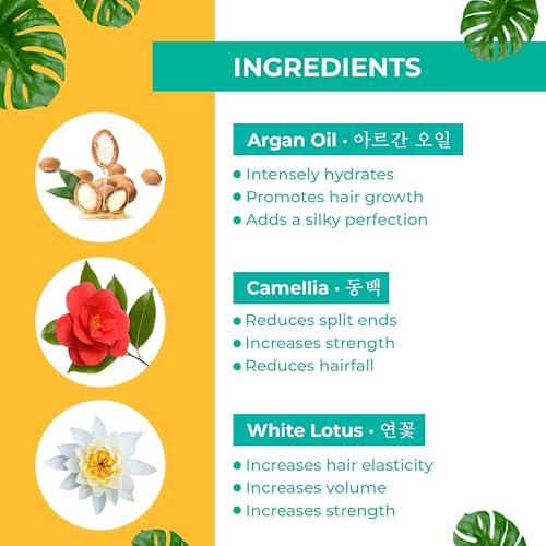 KOREAN BEAUTY SECRETS: Crafted with natureâs perfect blend of Korean Formulations this hair masque is an essential ritual for maintaining optimum hair health. Infused with the power of Argan Oil it's intensely hydrating and provides deep conditioning to