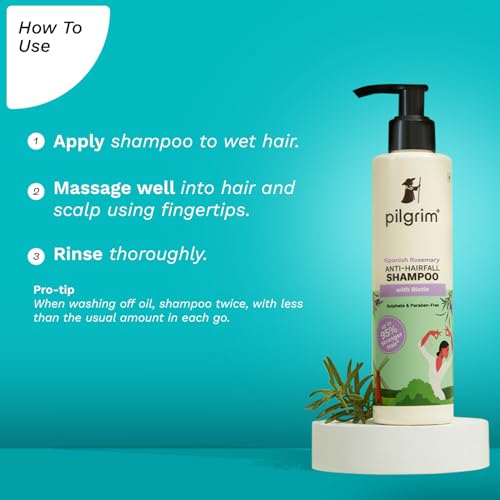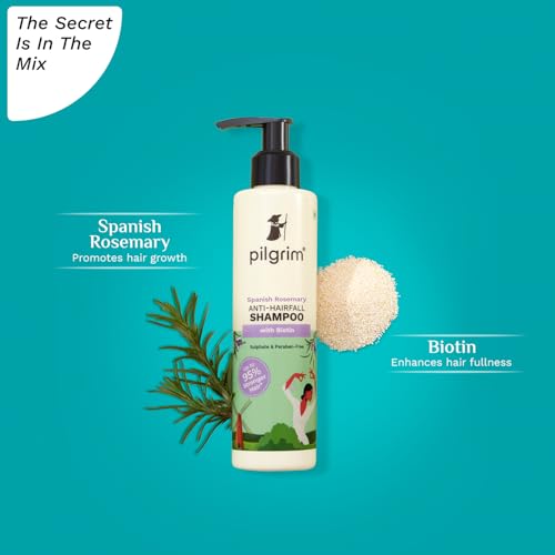 Concerned about hairfall and breakage? Say hello to a transformative anti-hairfall solution: Spanish Rosemary & Biotin Anti-Hairfall Shampoo. Crafted with a powerful blend of Spanish Rosemary and Biotin this shampoo strengthens hair by up to 95%* effectively reducing hairfall. (Based on the Instrumental Test of Pilgrim Spanish Rosemary & Biotin Anti-Hairfall Shampoo Conditioner & Oil vs Non-Conditioning Shampoo; Hairfall due to hair breakage). The world beauty secret in this anti-hairfall shampoo is Spanish Rosemary (Rosmarinus officinalis) a fragrant evergreen herb that hails from the sun-soaked Mediterranean region. Traditionally valued in Mediterranean countries to tackle hairfall Spanish Rosemary oil has been used in hair rituals for hundreds of years. This ancient remedy has been supported by clinical studies which show that rosemary oil is effective in supporting hair growth. Here's how it works. Spanish Rosemary blocks the activity of Dihydrotestosterone (DHT) a hormone linked to hair loss. It stops DHT's harmful effects by inhibiting the enzyme 5 alpha-reductase resulting in less hair fall. The formula gains an extra edge with Biotin a B-complex vitamin that increases scalp circulation increases hair density and strengthens follicles. With every wash this transformative shampoo rejuvenates strands. Experience the revitalizing touch of Spanish Rosemary & Biotin Anti-Hairfall Shampoo - your hair isn't just surviving; it's thriving.