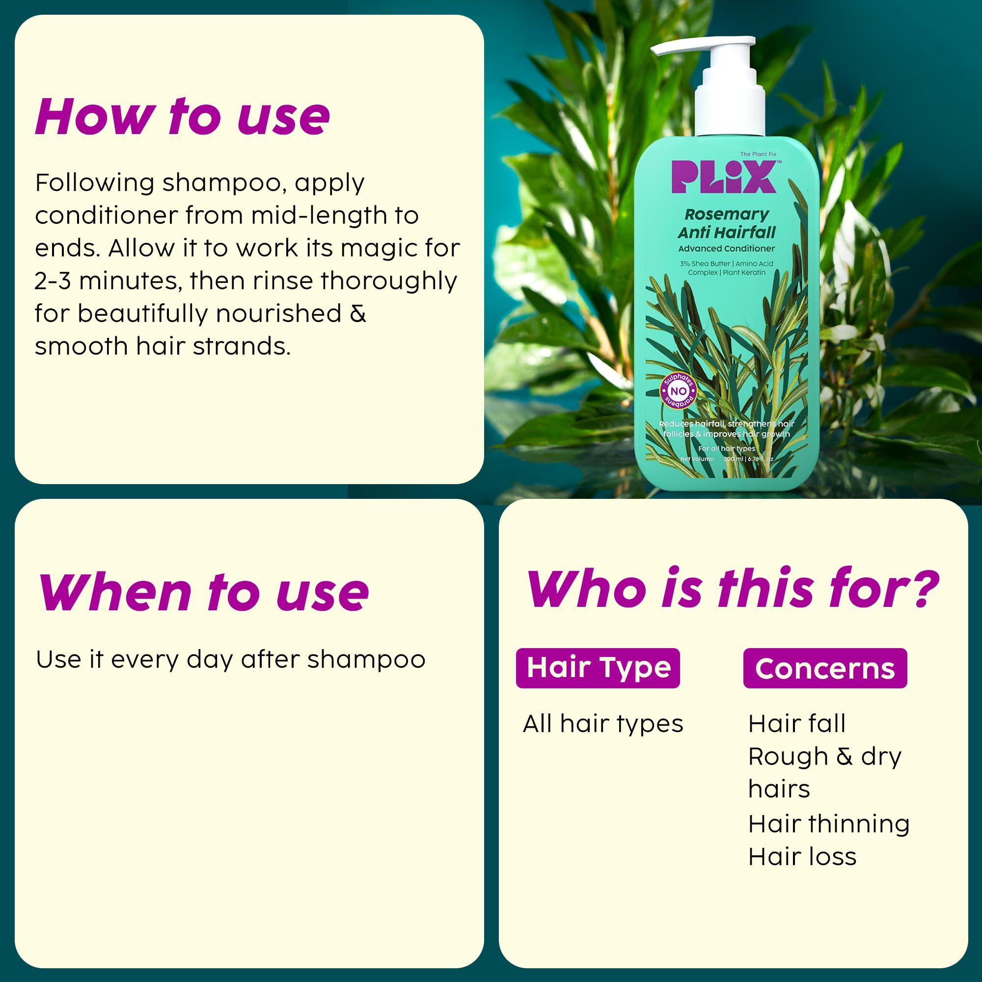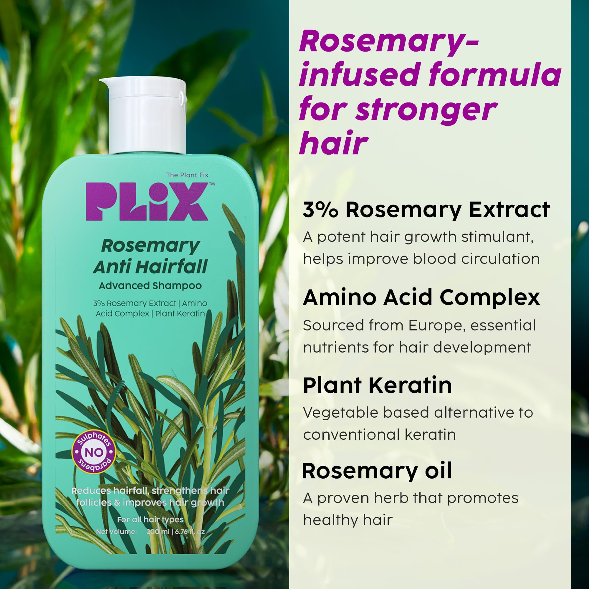 PLIX - THE PLANT FIX Rosemary Anti Hairfall Regime| Advanced Shampoo & Conditioner | Reduces Hair Fall & Strengthens Hair | Rosemary Extract, Ceramides & Plant Keratin | For Men & Women
