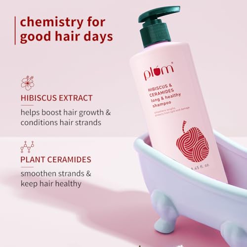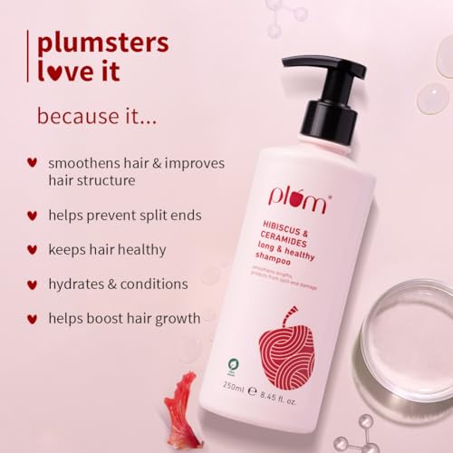 Plum Hibiscus & Ceramides Long & Healthy Shampoo | Hydrates & Conditions Hair, Prevents Split Ends |Contains Hibiscus Extracts, Ceramides | SLS & Paraben Free| 100% Vegan | 250ml