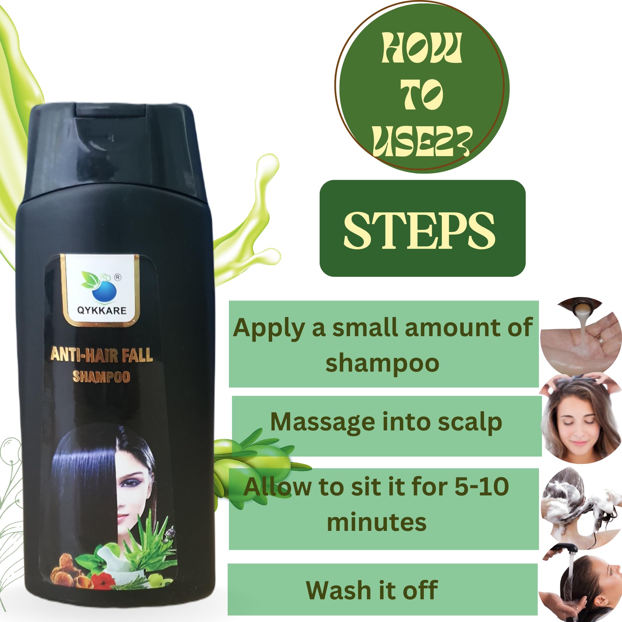 • Qykkare Anti Hair Fall Shampoo is made of natural herbs gives strength and shine to hair