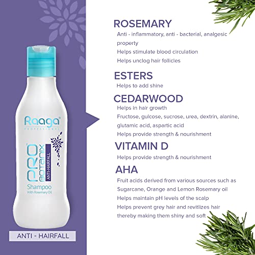 Raaga Professional Pro Botanix Anti-Hair Fall Shampoo with Rosemary Oil (200 ml) Prevents Hair Breakage, Imparts Hair Growth | Suitable For Men and Women