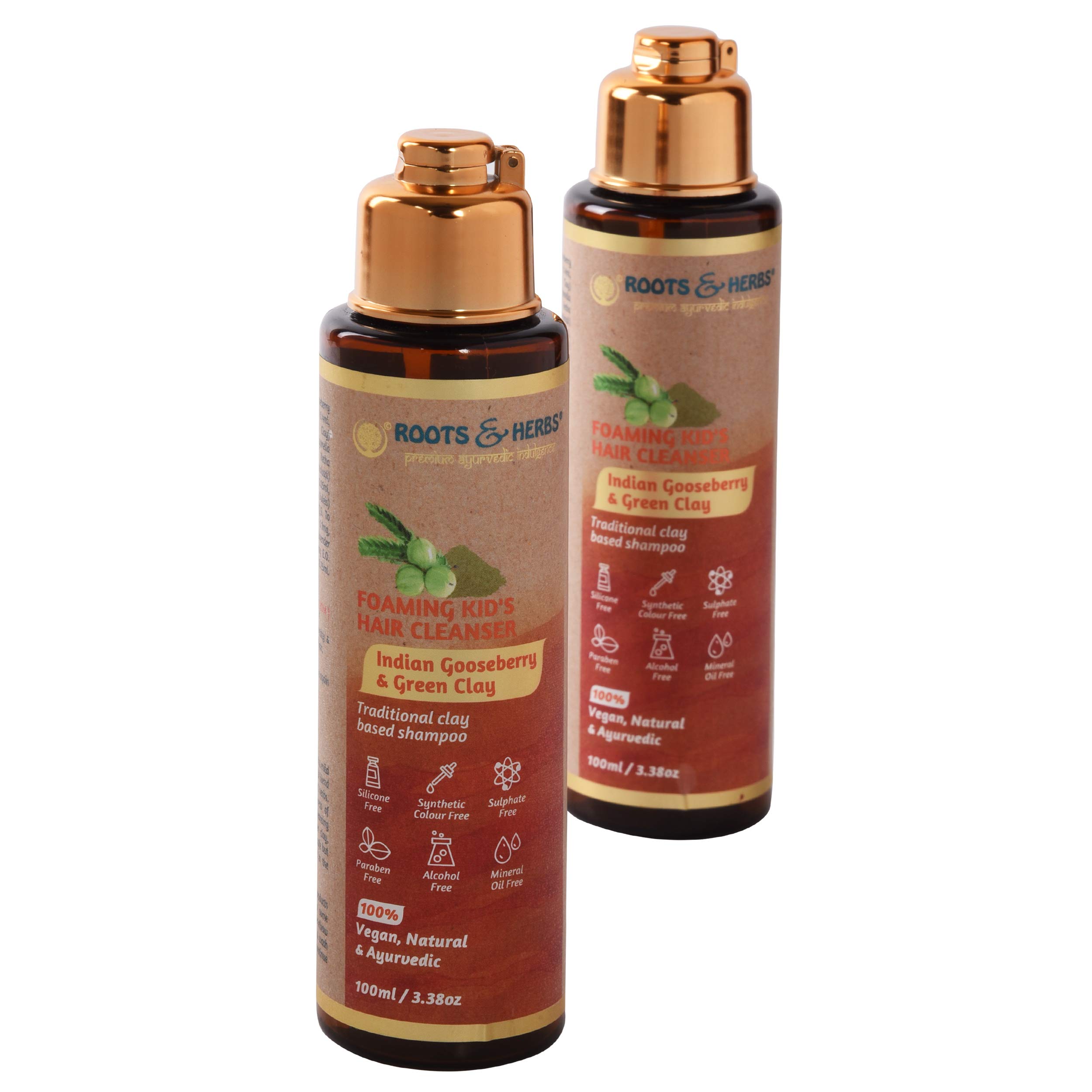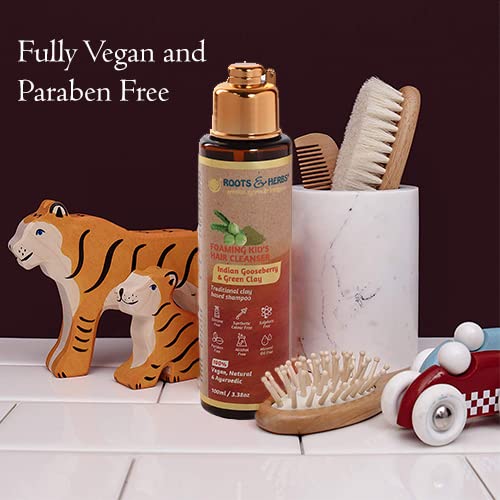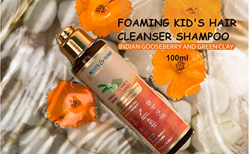 Roots And Herbs Ayurvedic Natural Treatment 100% Vegan No Paraben Foaming Kid's Hair Cleanser Shampoo (Indian Gooseberry & Green Clay)