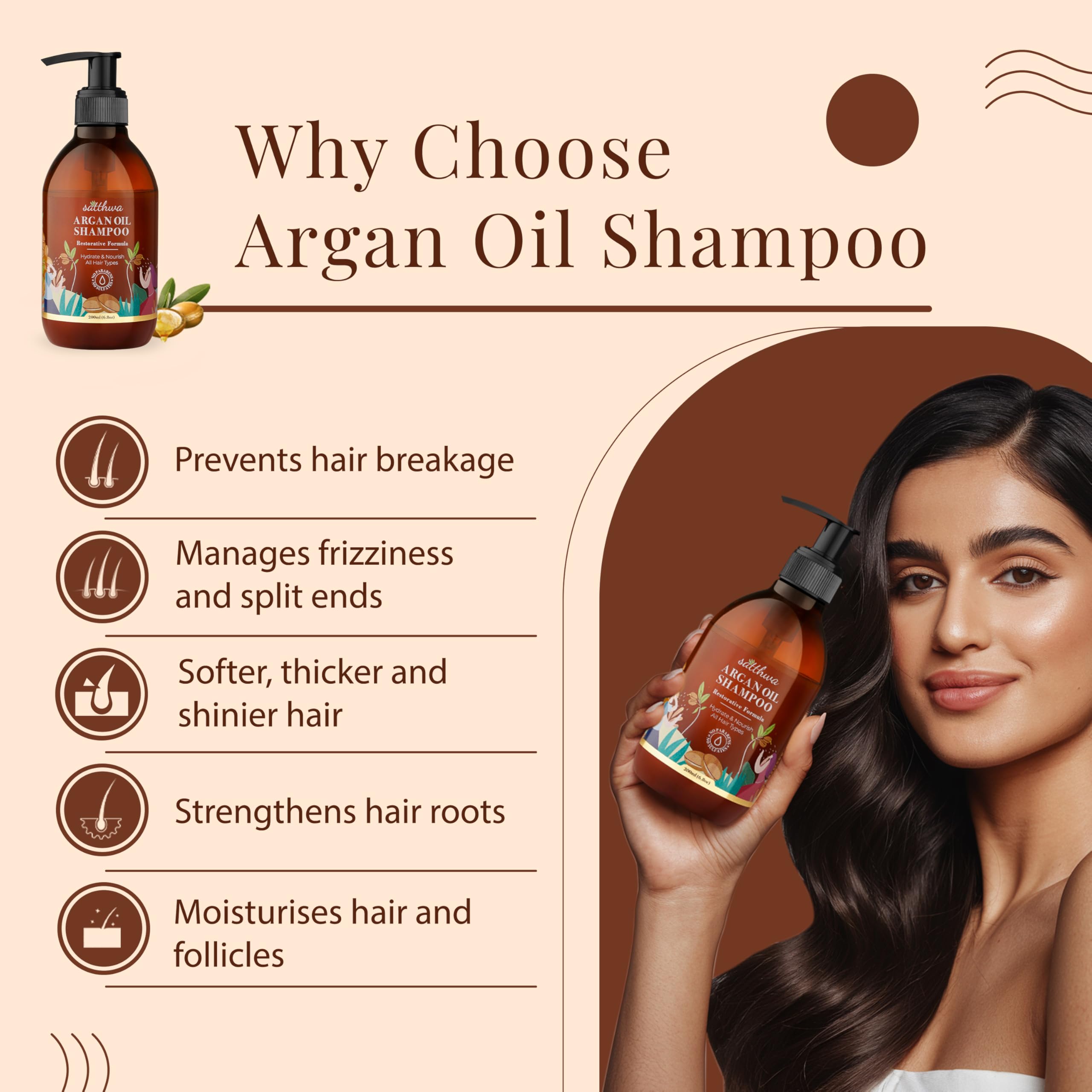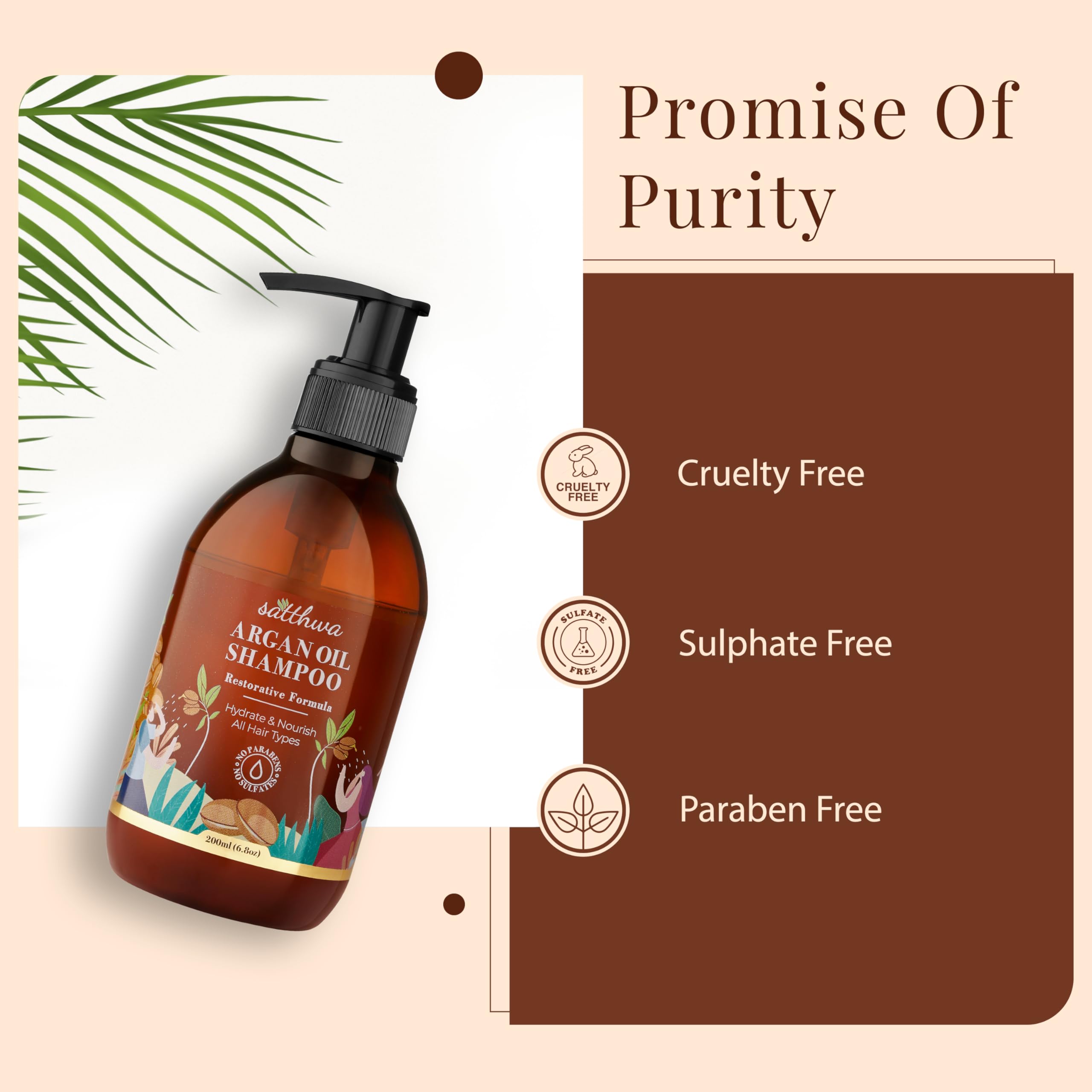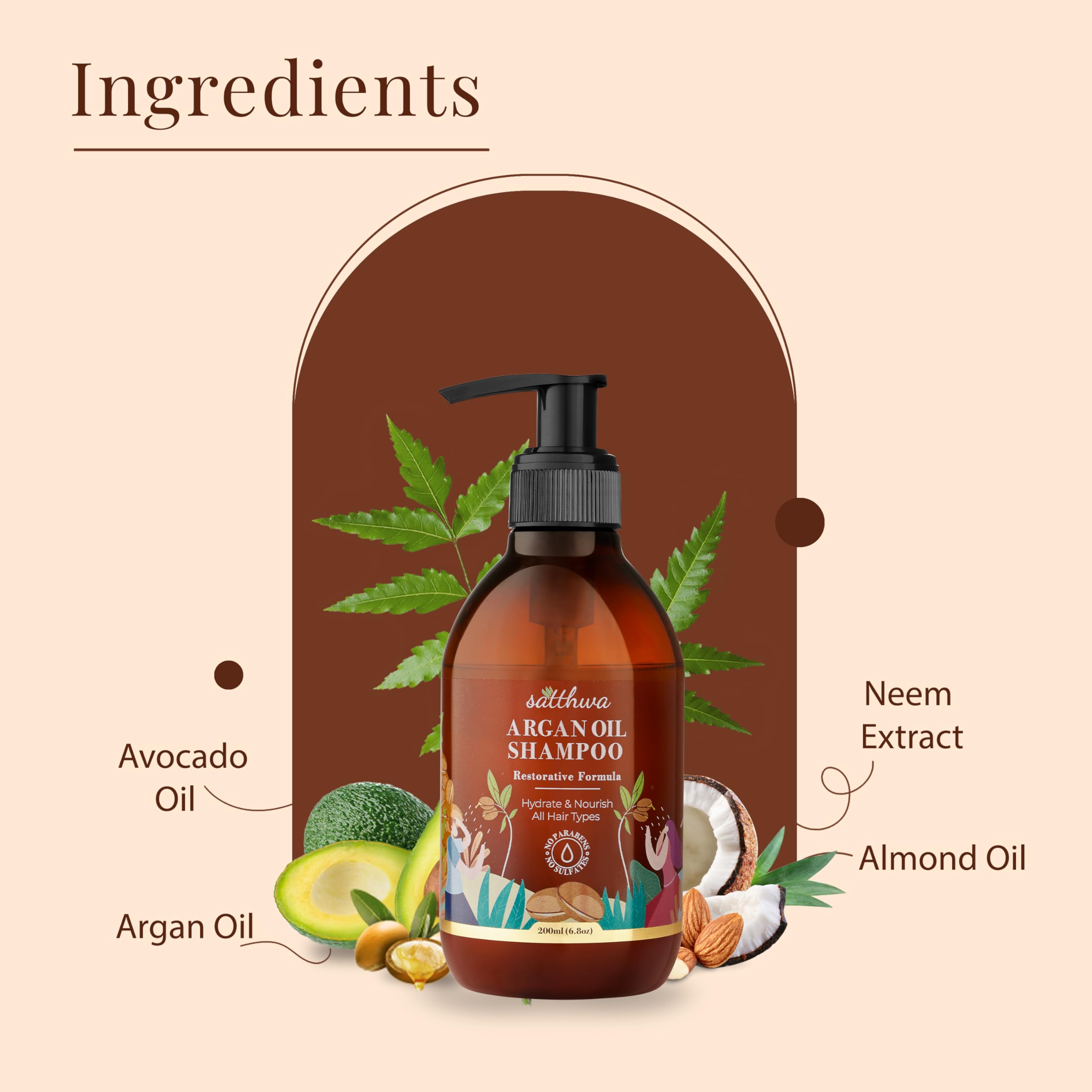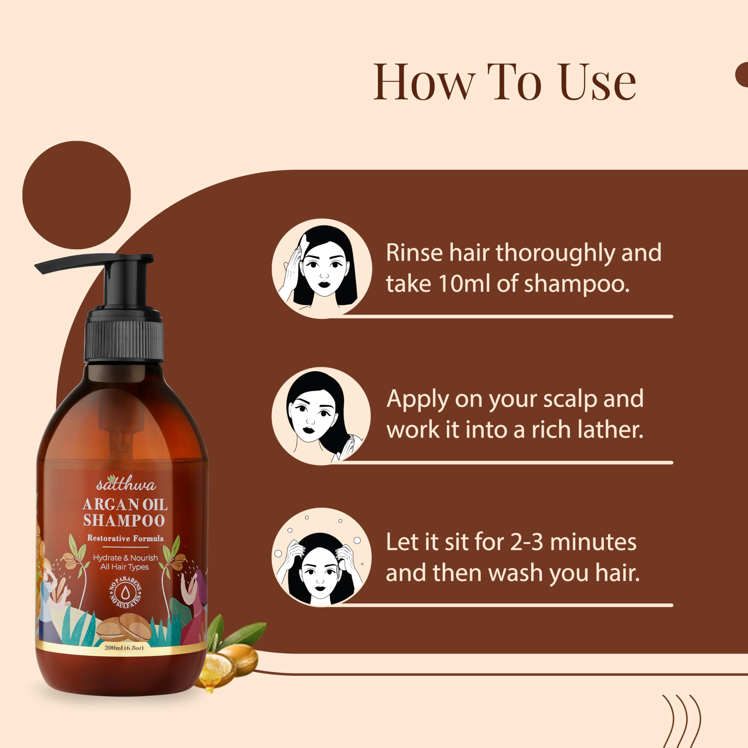 Satthwa Argan Oil Shampoo Helps for Dandruff & Dry Scalp Mild Daily Frizz Free Shiny and Damage Hair - For Men & Women (200ml)