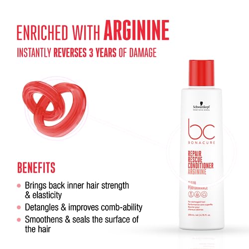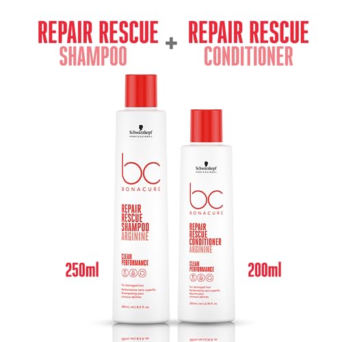 Schwarzkopf Professional Bc Peptide Repair Rescue Conditioner, Red, 200 Ml And Bc Peptide Repair Rescue Micellar Shampoo, Red, Fresh, 250 Ml | For Damaged Hair - 3 Count