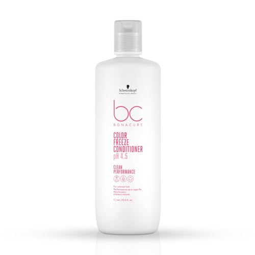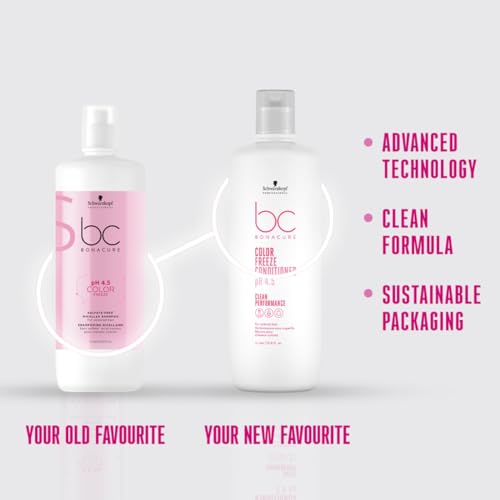 NEW BC Bonacure range is powered with Vegan Keratin Complex and Cell Equalizer technology. Vegan Keratin Complex helps improve cortex strength and Cell equalizer helps repair the outer cuticle of the hair. BC Bonacure Color Freeze Conditioner gently conditions slightly porous and colour treated hair. DIAGNOSIS: Hair is slightly porous and colour treated and client wants to maximise colour retention. WHAT IT DOES: Facilitates detangling and improves combability The formula helps to bring hair back to its optimal pH level and prevent colour fading Revives dull colours and adds shine to colour treated hair Helps to smoothen the surface of the hair HOW IT WORKS: Its soft formula gently conditions the hair while keeping the colour without overburdening. pH 4.5 Balancer Technology brings hair to its optimal pH level to perfectly lock in colour pigments. For long-lasting intense colour. HOW TO USE: Apply to towel-dried hair (8-12g) and work in. Rinse thoroughly after 2 min.