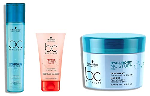 Schwarzkopf Professional Moisture Hair Mask&Schwarzkopf Professional Moisture Kick Micellar Shampoo &Schwarzkopf Professional Bonacure Peptide Repair Rescue Sealed Ends
