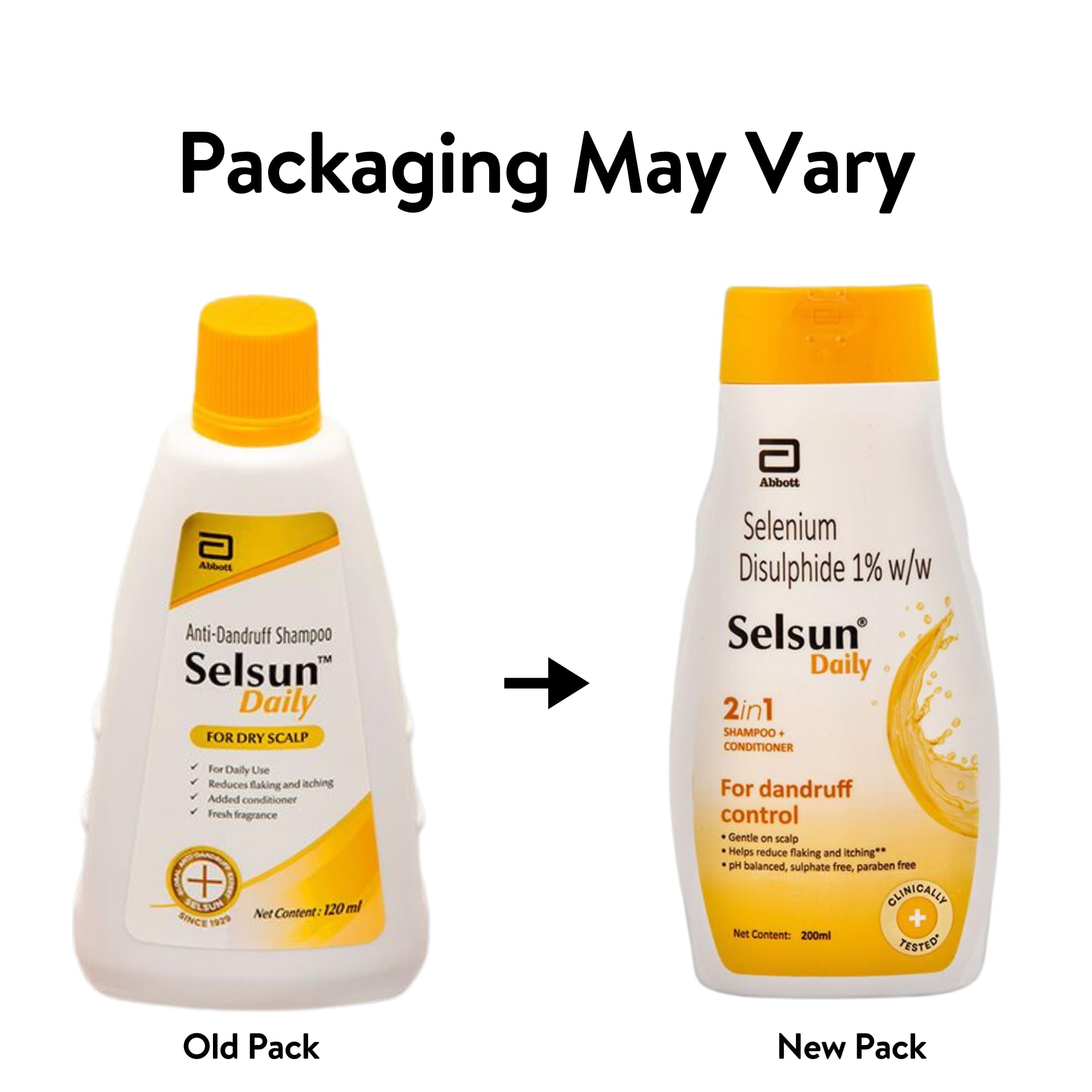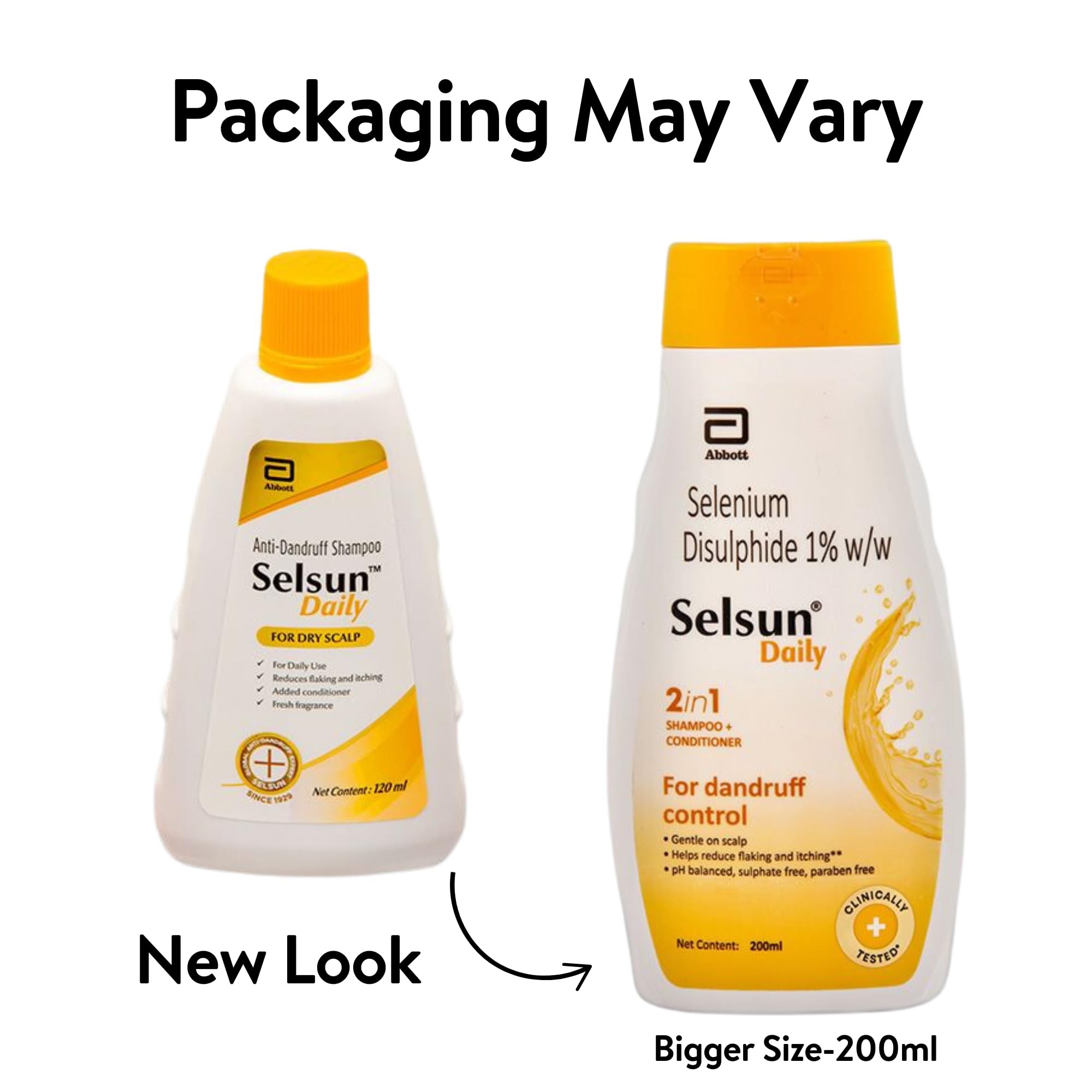 • Selsun Daily targets the fungi causing dandruff and relieves from dandruff related itching and flaking. Furthermore it controls excessive oiliness and production of new flakes