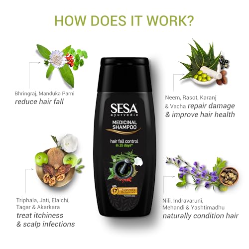 SESA Ayurvedic Hair Oil 200Ml + Ayurvedic Medicinal Shampoo 200Ml Combo Pack Control Hair Fall Nourishes Scalp Help Hair Growth For Men & Women