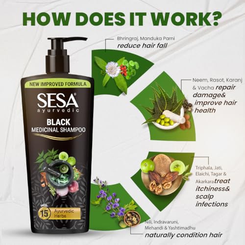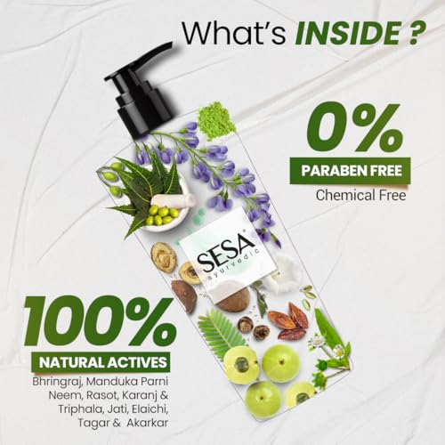 Certified Ayurvedic Hairfall Control: Sesa Ayurvedic Medicinal shampoo infused with 17 medicinal herbs is a natural solution for preventing hair fall and promoting stronger healthier strands.