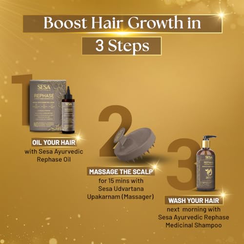 HomeHealth & PersonalHair CareOrganic Shampoos & ConditionersSESA Ayurvedic Rephase 2 Step Hair Oil Kit And Rephase Shampoo 300ml With 26 Herbs And 6 Essential Oils Help Control Hair Fall & Strengthen Roots With Massager Hair Combo For Women And Men