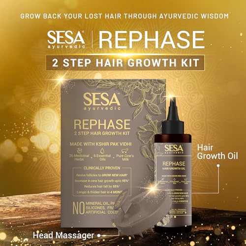 HomeHealth & PersonalHair CareOrganic Shampoos & ConditionersSESA Ayurvedic Rephase 2 Step Hair Oil Growth Kit With 26 Herbs And 6 Essential Oils Promotes Hair Growth Help Reduces Hair Fall With Massager Natural Hair Oil For Women And Men, 100 Ml