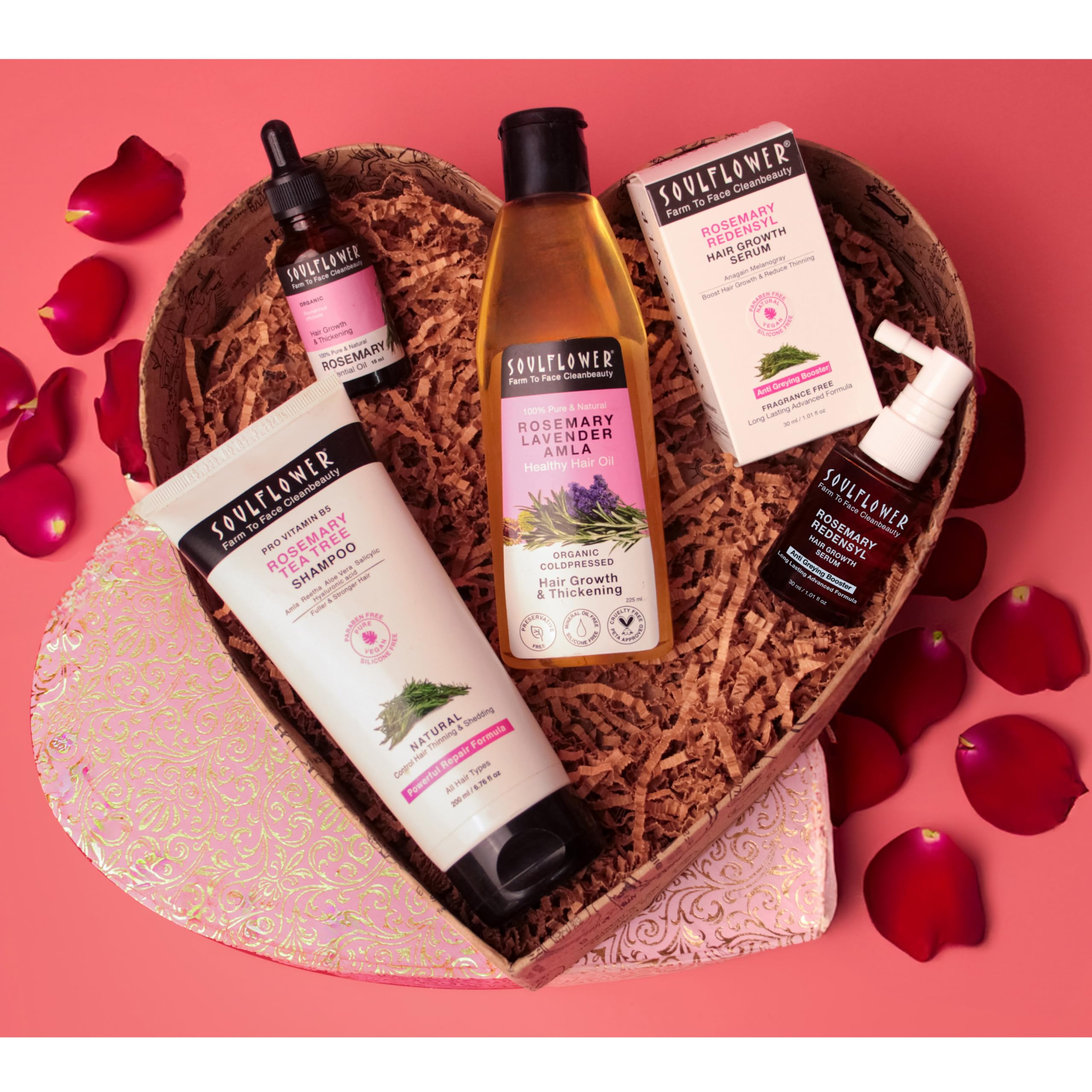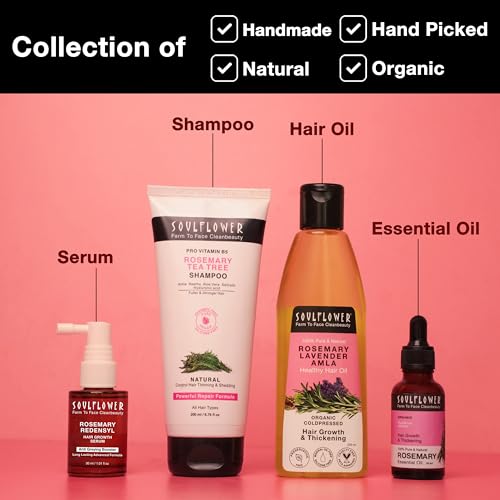 HomeHealth & PersonalHair CareOrganic Shampoos & ConditionersSoulflower Rosemary Gift Set for Men & Women with Redensyl Hair Growth Serum, Rosemary Oil, Tea Tree Shampoo | Hair Growth, Hair Fall Control| 100% Pure, Natural, Organic Ceritified |Pack of 4 |