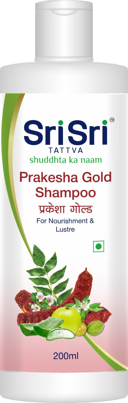 Sri Sri Tattva Prakesha Gold Shampoo is made from an exquisite blend of essential Ayurvedic herbs. Suitable for all hair types this unique herbal formula helps in nourishing the hair from the root and adds lustre to your hair. Use Sri Sri Tattva Prakesha Gold Shampoo to get soft silky and shiny hair.Key BenefitsGood for hair nourishes. Smoothens the hair. How to UseApply to wet scalp and hair. Massage to form lather and rinse thoroughly. For best result use twice a week. Key IngredientsAmla Ritha Net Weight: 200 ml