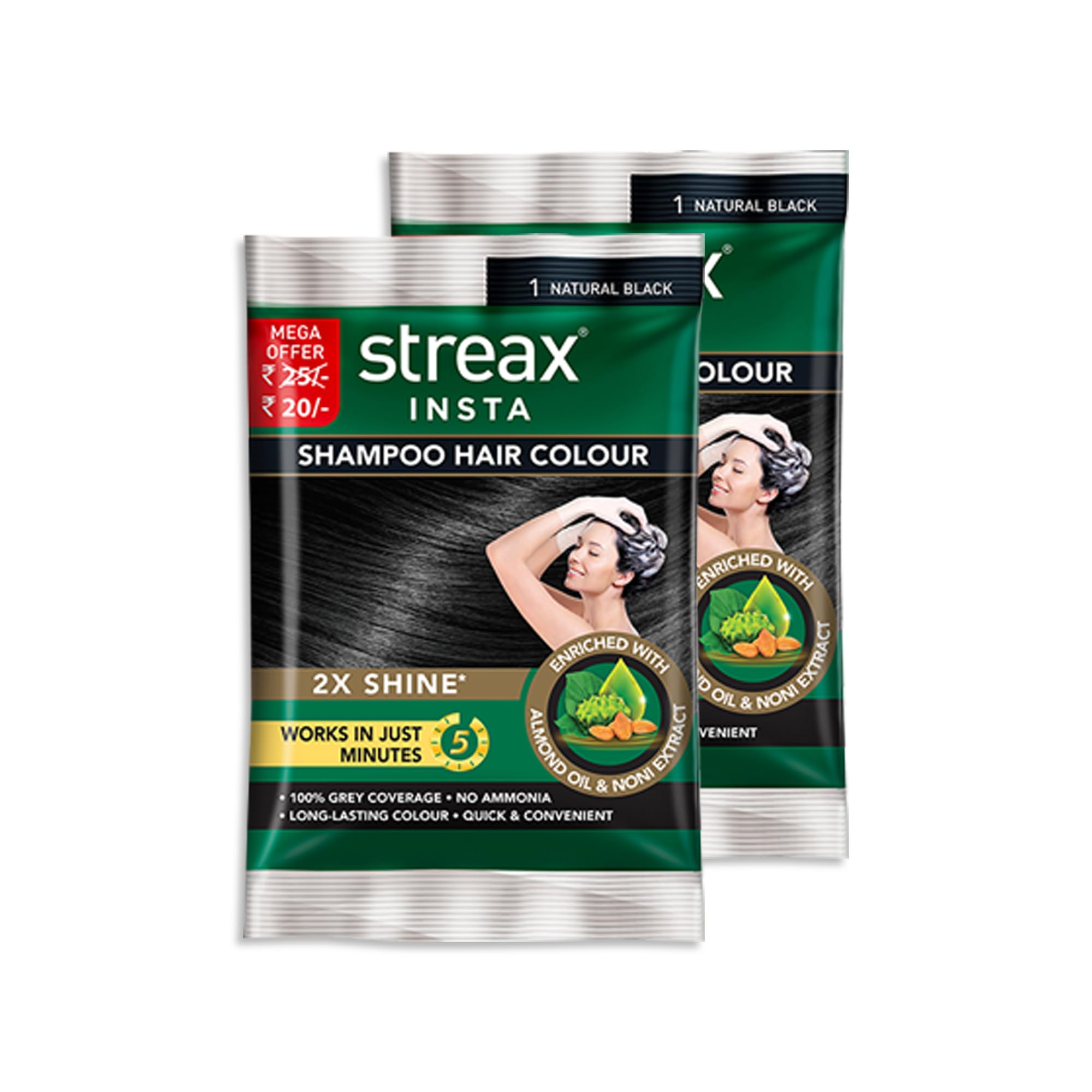 Streax carries a sharp focus while developing products under its portfolio so as to provide world class products with unique characteristics & quality. On its journey to provide best in class hair colour products they envisioned a revolutionary instant shampoo hair colour enriched with almond oil and noni extracts that protects your hair from getting damaged. The easy-to-use quick and convenient instant shampoo hair colour gives you bold shiny and glossy look. Streax insta shampoo hair colour is enriched with almond oil and noni extracts that gives your hair a new shine & smoothness. This hair colour is available in 4 different shades. Streax excels in crafting the products that comes with iso quality production process. Streax been delivering quality products and beautiful range for hair skin and beauty care. Find more of our innovative product range.
