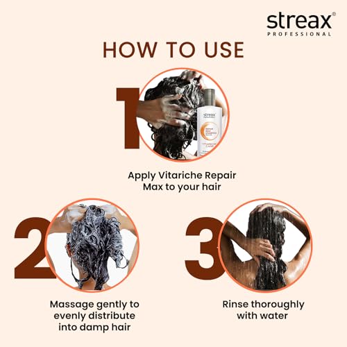ENRICHED WITH BIOVIT-A-OX â¬â Streax Professional Vitariche Care Repair Max shampoo is enriched with Biovit-A-OX complex which is a combination of Biotin & antioxidants-Vitamin B5 & Vitamin E; REPAIRS & REJUVENATES DRY & DAMAGED HAIR â¬â Streax Prof