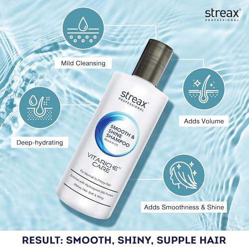 HomeHealth & PersonalHair CareOrganic Shampoos & ConditionersStreax Professional Vitariche Care Smooth & Shine Shampoo For Women| Nourishing Biovit-A-OX Hair Shampoo | Infused with Silk Proteins| Ideal for Normal to Dry & Frizzy Hair| 300ml Bottle