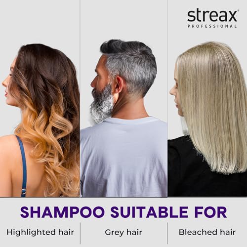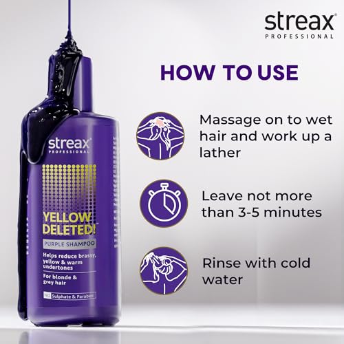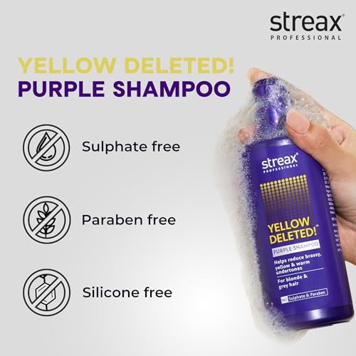 Streax Professional Yellow Deleted! Purple Shampoo, 300 ml I For Prelightened, Blonde & Grey Hair I Sulphate & Paraben Free