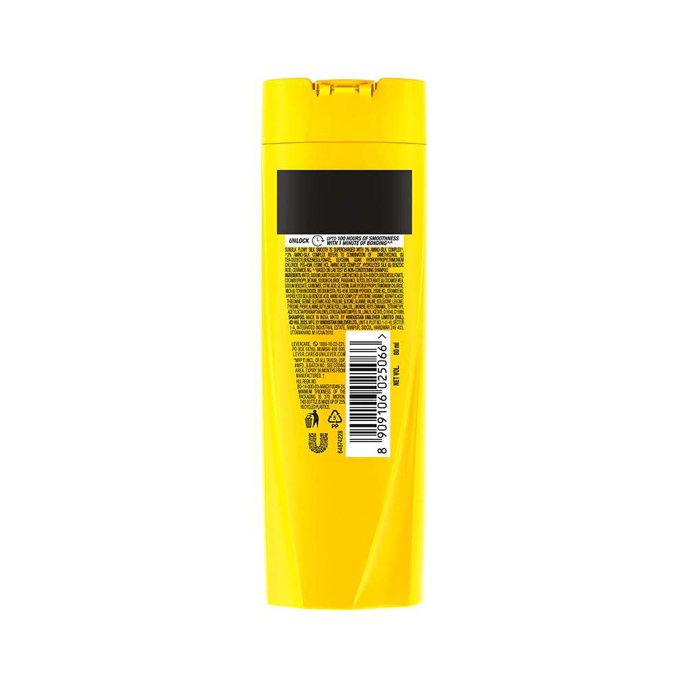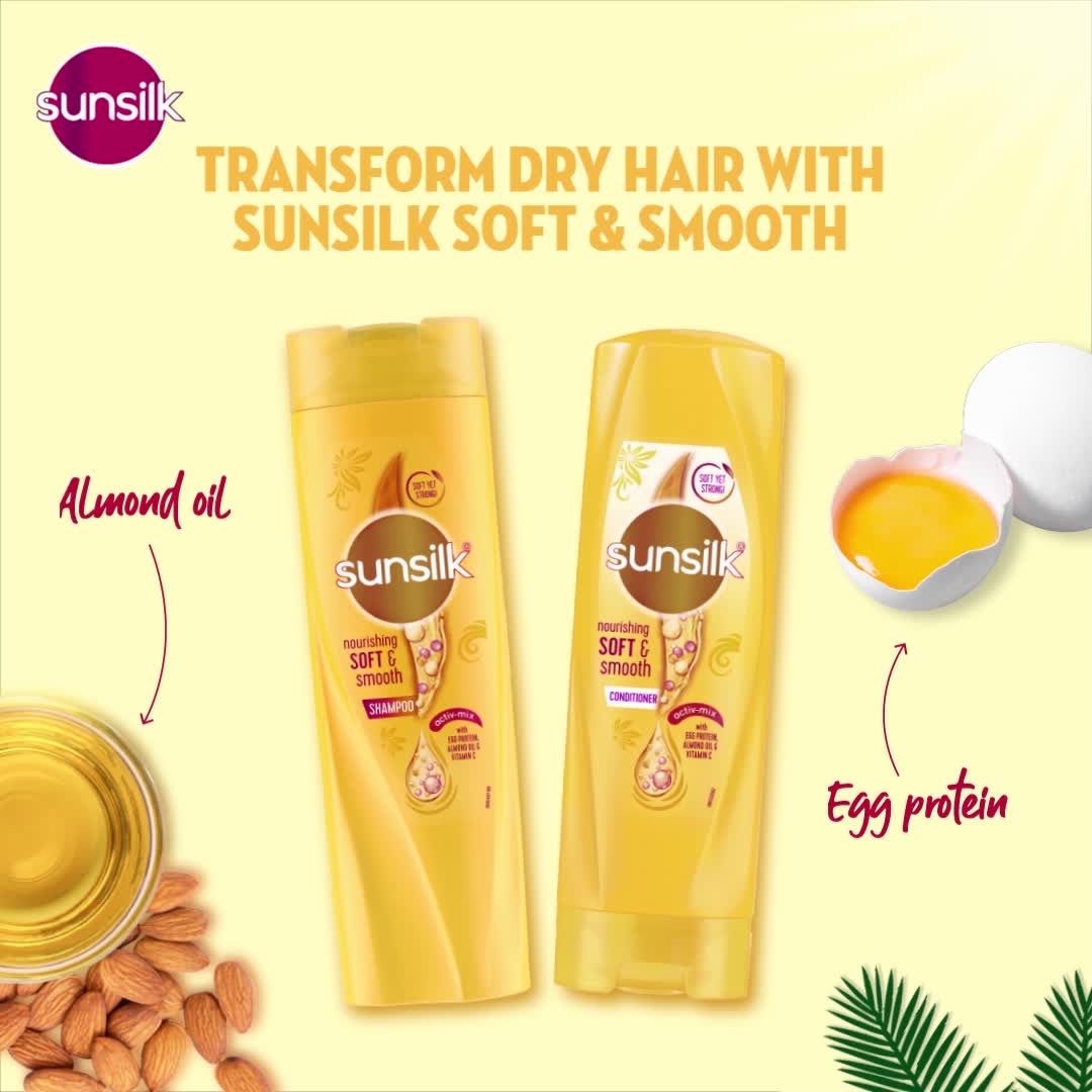 Sunsilk Nourishing Soft & Smooth Shampoo for silky smooth hair that's wonderful to touch! It comes with activ-mix that contains Egg Protein Almond Oil and Vitamin C. Egg protein is known for its moisturizing properties Almond Oil is known for smoothening properties for softer hair & Vitamin C is known for making hair sleek! Together this formula of powerful ingredients works to give you up to 2X smoother and softer hair* (Based on lab test vs. non-conditioning shampoo) Now transform your dry hair to soft and smooth with Sunsilk Nourishing Soft & Smooth Shampoo. Directions to use the shampoo: 1. After washing your hair thoroughly take 2 to 3 drops of the shampoo on your palm equal to the size of a coin 2. Apply the shampoo by gently massaging it all over your hair from roots to the tips. 3. Leave the shampoo on your hair for a couple of minutes and then rinse it off completely. For best results follow up with the use of Sunsilk Nourishing Soft & Smooth Conditioner. Using a conditioner correctly can make a difference to hair. By conditioning your hair well you are ensuring that it behaves just like you want it to every time you style it.