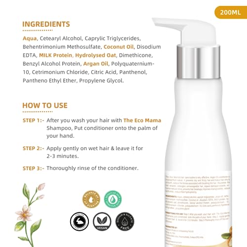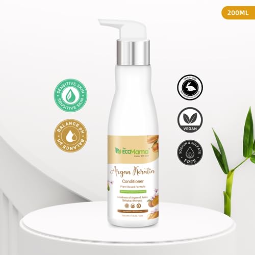 The Eco Mama Argan Keratin Hair Conditioner (200ML) for Deep Hydration, Repair for Smooth, Strong, Fizz Free and Shiny Hair