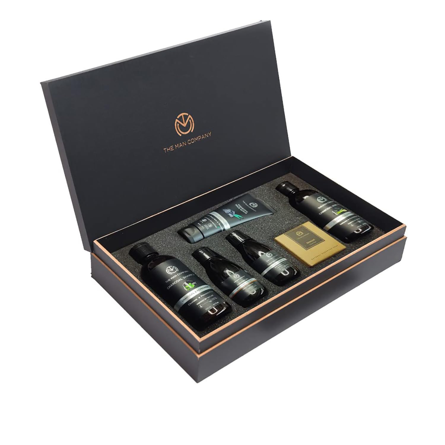 The Man Company Charcoal Grooming Kit for Men with Body Wash Hair Shampoo Face Scrub Face Wash Cleansing Gel Soap Bar | Gift Set for Brother Husband Boyfriend - Pack of 6