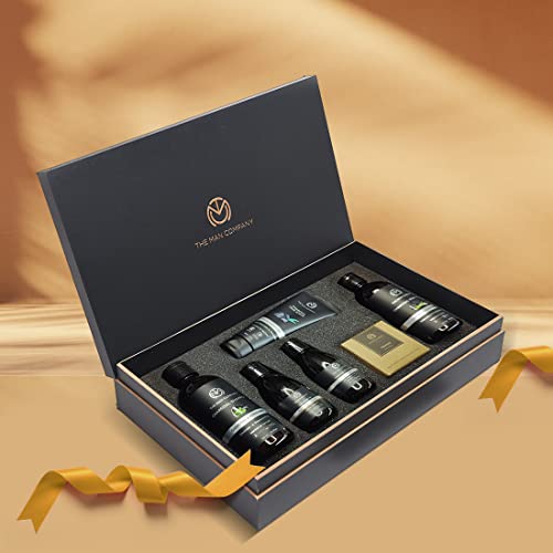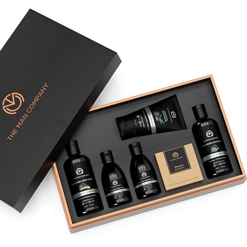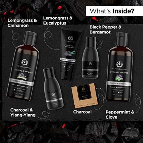 The Man Company Charcoal Grooming Kit for Men with Body Wash, Hair Shampoo, Face Scrub, Face Wash, Cleansing Gel, Soap Bar | Gift Set for Brother, Husband, Boyfriend - Pack of 6