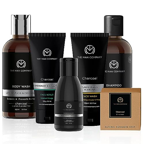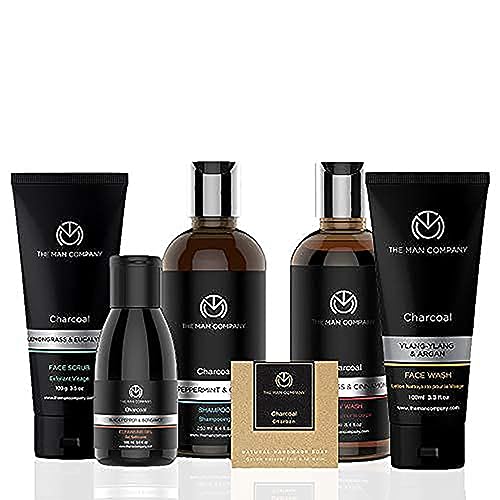 The Man Company Charcoal Grooming Kit with Body Wash, Shampoo, Face Scrub, Face Wash, Cleansing Gel, Solid Soap Bar | Combo Gift Set for Husband, Boyfriend - Set of 6