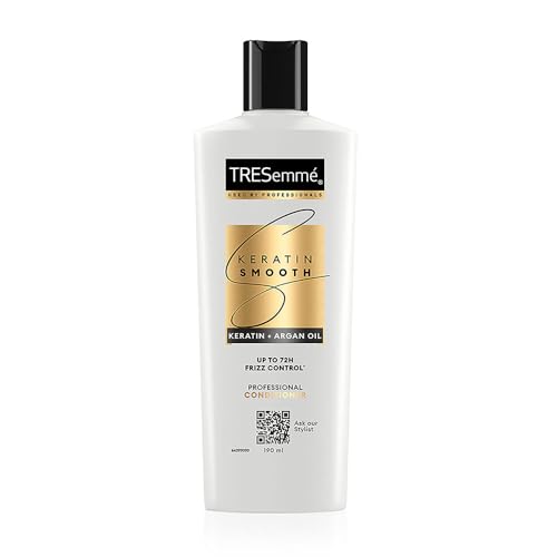 Deep condition your hair and protect them from damage to get smoother hair with the TRESemmé Keratin Smooth Conditioner 190ml. With its lower sulfate formulation it helps restore keratin in your hair nourishes every strand to leave your hair straighter and shinier and controls frizz for up to 3 days. Why should you choose TRESemme Keratin Smooth Conditioner? Infused with Keratin and light-weight Argan oil this nourishing conditioner can make your hair visibly straight and smoother. The Keratin-Moroccan Argan Oil formulation conditions and strengthens your hair as well as provides them the hydration and elasticity that they need. So say no to frizzy hair and say yes to gorgeous salon smooth hair without the salon price tag! These TREsemme conditioners for hair are suitable for both men & women. What is the best way to use TRESemme Conditioner? After shampooing your hair apply an adequate amount of TRESemmé Keratin Smooth Conditioner from mid-lengths to the ends. Leave it on for 2-3 minutes and let it work its magic. Rinse your hair thoroughly with lukewarm water. For best results pair this conditioner with TRESemmé Keratin Smooth Shampoo. With its dual action TRESemmé Keratin Smooth professional conditioner can make your hair up to 100% smoother and give them extra shine. It is suitable for use for both naturally and chemically treated hair. When used together with the TRESemmé Keratin Smooth Shampoo it controls frizz for up to 3 amazing days helping you tame your frizz and giving you silky smooth hair.