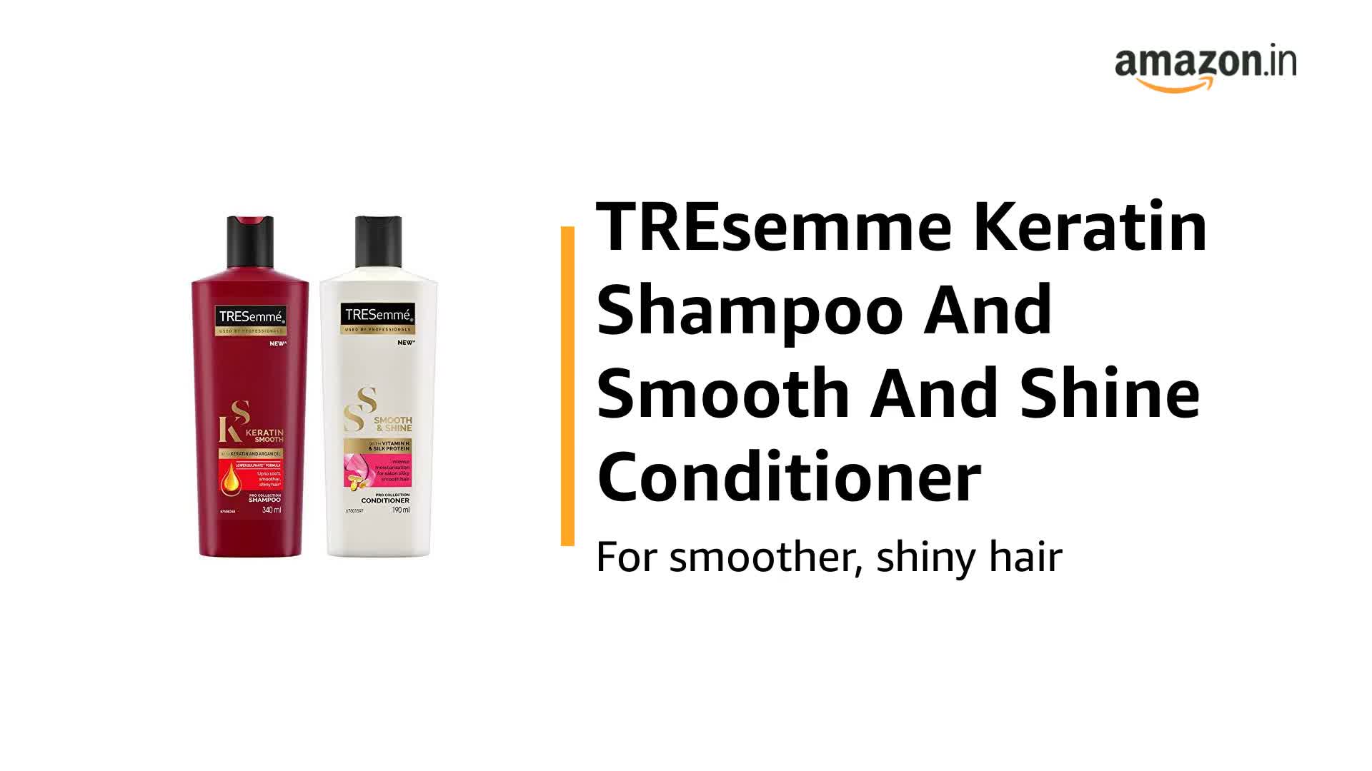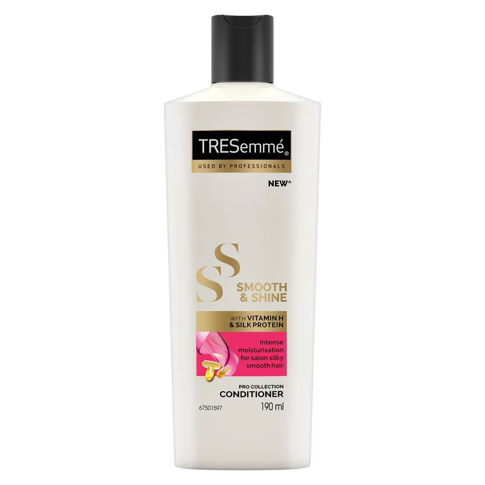 TRESemme Keratin Smooth Shampoo 340mlYou don't have to go to the parlour every time to get gorgeous-looking hair. Bring home the TRESemme Keratin Smooth Shampoo and get salon-style hair at home. Specially formulated with lower sulphates and high-quality ingredients this shampoo will nourish each strand of your hair to give you straighter shinier and more manageable hair.TRESemme Smooth and Shine Conditioner 190mlLaunched in 1948 TRESemmé was named after renowned hair care expert Edna Emmé. Up until the 1950's TRESemmé was sold only in salons. Today it is available at a shop near you so that you can have salon style hair at home. For over 60 years TRESemmé has built a history of success in 13 countries around the world. From its origins in 1947 and salon expertise TRESemme has been driven by a simple truth: every woman deserves to look & feel fabulous like she has just stepped out of the salon everyday. This range has been carefully selected for its advanced formula. Driven by our salon heritage we work with our stylists to deliver expert solutions from salon quality products without the salon price tag. Our salon inspired products enriched with high quality ingredients help you experience that salon feeling everyday. With Vitamin H and silk protein TRESemme Smooth & Shine conditioner provides intense moisturisation for salon smooth silky hair. It has an advanced smoothing system that is enriched with Moroccan Argan oil. It controls frizz and fly aways without weighing your hair down. For hair that feels detangled more manageable soft and smooth. For best results use after the TRESemme Smooth & Shine Shampoo.