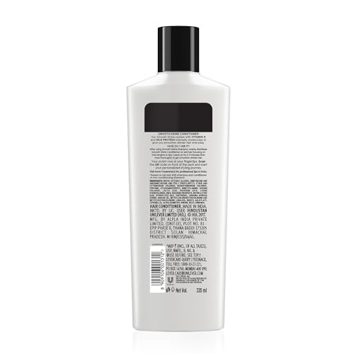 Deep condition your hair and protect them from damage to get smoother hair with the TRESemmé Smooth & Shine Conditioner 340ml. With its lower sulfate formulation it helps restore keratin in your hair and nourishes every strand to leave your hair straighter and shinier. Why should you choose TRESemme Smooth & Shine Conditioner? Infused with Vitamin H and Silk Proteins this nourishing conditioner can make your hair visibly straight and smoother and can tame unruly strands and give you up to 7x smoother hair. The Vitamin H - Silk Protein formulation conditions and strengthens your hair as well as provides them the hydration and elasticity that they need. So say no to frizzy hair and say yes to gorgeous salon smooth hair without the salon price tag! These TREsemme conditioners for hair are suitable for both men & women. What is the best way to use TRESemme Conditioner? After shampooing your hair apply an adequate amount of TRESemmé Smooth & Shine Conditioner from mid-lengths to the ends. Leave it on for 2-3 minutes and let it work its magic. Rinse your hair thoroughly with lukewarm water. For best results pair this conditioner with TRESemmé Smooth & Shine Shampoo. With its dual action TRESemmé Smooth & Shine professional conditioner can make your hair up to 100% smoother and give them extra shine. It is suitable for use for both naturally and chemically treated hair. When used together with the TRESemmé Smooth & Shine Shampoo it can tame unruly strands and give you up to 7x smoother hair.