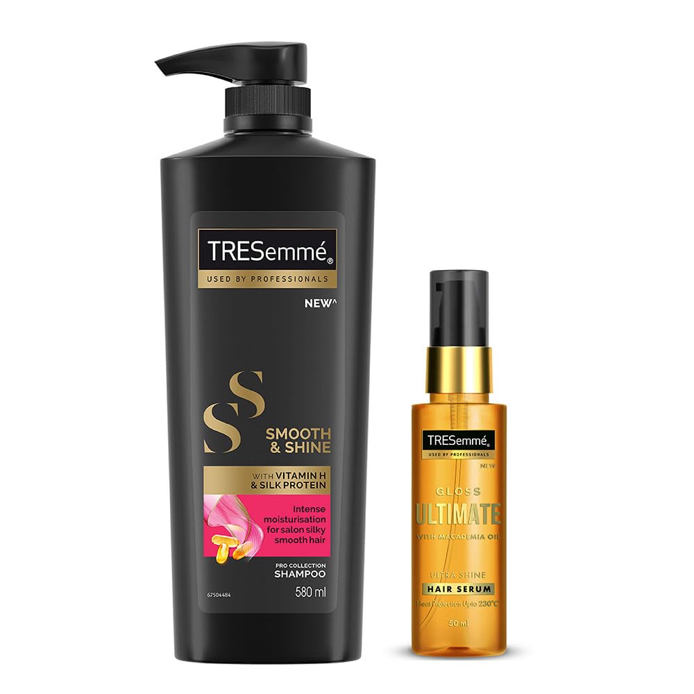 Gloss Ultimate Ultra Shine Hair Serum Salon style hair with super shiny finish Salon Quality TRESemme Gloss Ultimate Hair Serum is infused with Vitamin E and a blend of 3 powerful oils nourishing Coconut oil conditioning Macadamia Oil and moisturizing Sunflower Seed Oil provides glossy shine and deep nourishment to hair. It coats hair strands to give a salon smooth shiny finish at home. PRO TIP Before styling use Gloss Ultimate Hair Serum to protect hair from heat damage upto 230*C and make unruly hair more manageable. Transforming dull hair to stylish glossy hair. Use Gloss Ultimate Hair Serum before styling to: ⢠Boost Shine ⢠Nourish ⢠Detangle ⢠Protects from heat damage ⢠Adds smoothness Indulge in the luxury of long-lasting floral fragrance of this leave-in hair serum which lasts upto 48 hours* *Based on lab test vs non-conditioning shampoo A heat protect serum is must if you style your hair regularly or even occasionally. Styling tools for blow drying straightening or curling usually work at high temperatures which can cause damage to hair. TRESemme Gloss Ultimate Hair Serum helps protect hair from temperatures as high as 230*C Pick right dosage of hair serum for your hair type. It is ideal for fine to medium hair.