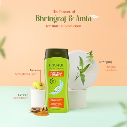 SHAMPOO TRAITS Hair Type: All Hair Types Hair Condition: Permed Hair Damaged Hair Normal Hair Applied For: Damage Repair Anti-hair Fall Scalp Cleansing Nourishment & Moisturization Hair Shine Straightening & Smoothening Split-ends Frizz Control Hair Texture: Fine Ideal For: Boys Men Girls Women Organic: Yes GENERAL TRAITS Brand: Trichup Total Quantity: 400 ml Model Name: Hair Fall Control Shampoo Small Pack of 2 Container Type: Bottle IN THE BOX 2 Shampoo PRODUCT DESCRIPTION 1) Trichup Hair Fall Control Shampoo contains a gentle cleansing base enriched with hair tonic herbs which together strengthen hair follicles and prevent premature hair fall. 2)As a gentle way to control hair fall it has been a preferred choice of millions. SALIENT FEATURES Reduces hair fall & thinning hair Improves hair texture Repairs and revitalizes hair fibers. Direction of use: Apply to wet Hair work out rich lather rinse thoroughly. Repeat if necessary.