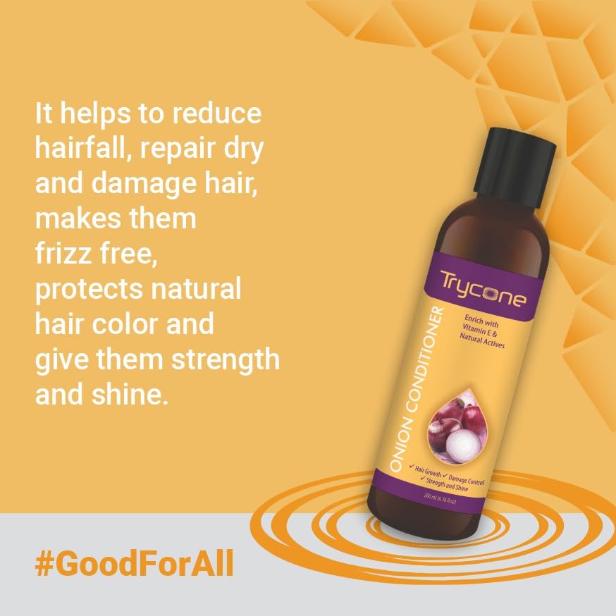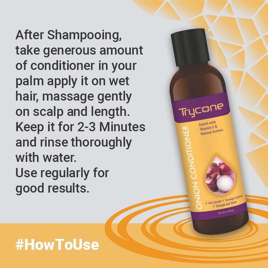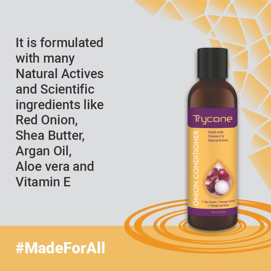 Trycone Onion Conditioner for Dry & Frizzy Hair with Red Onion Vitamin E & Natural Actives - Hair Growth Damage Control Strength & Shine - Unisex No Side Effects 200 ml